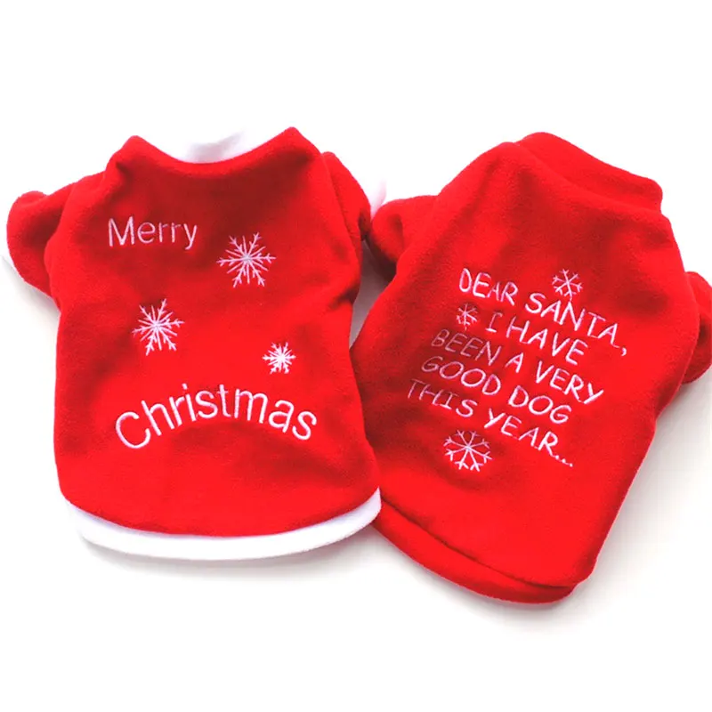 Милые рождественские костюмы для домашних животных; Зимние вышитые свитшоты; Красная одежда для собак