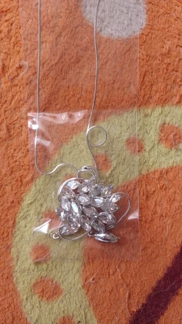 Очень понравился кулон. То что я хотела. Смотрится отлично. Заказывала на торжество к чёрному комбинезону. Имею такую же сумочку и туфли. Думаю будет круто смотреться. Качество кулона отличное. Тяжёленький. Блестит и переливается как надо. Посылка пришла быстро, за 2 недели.