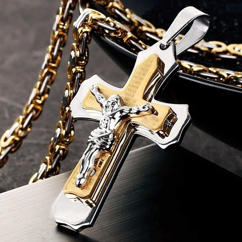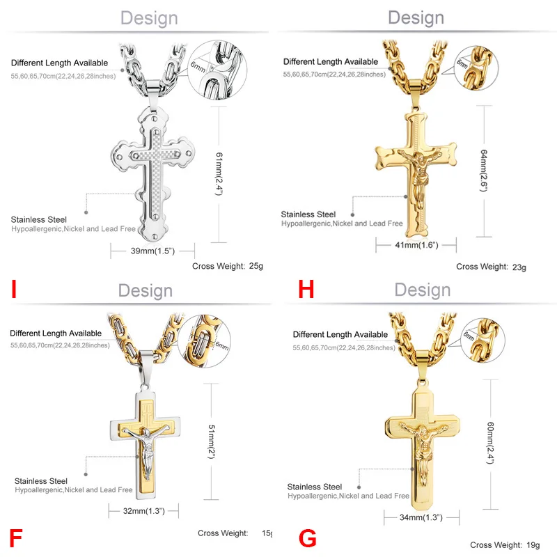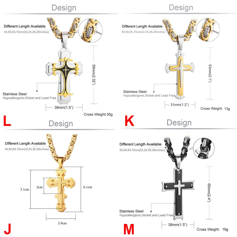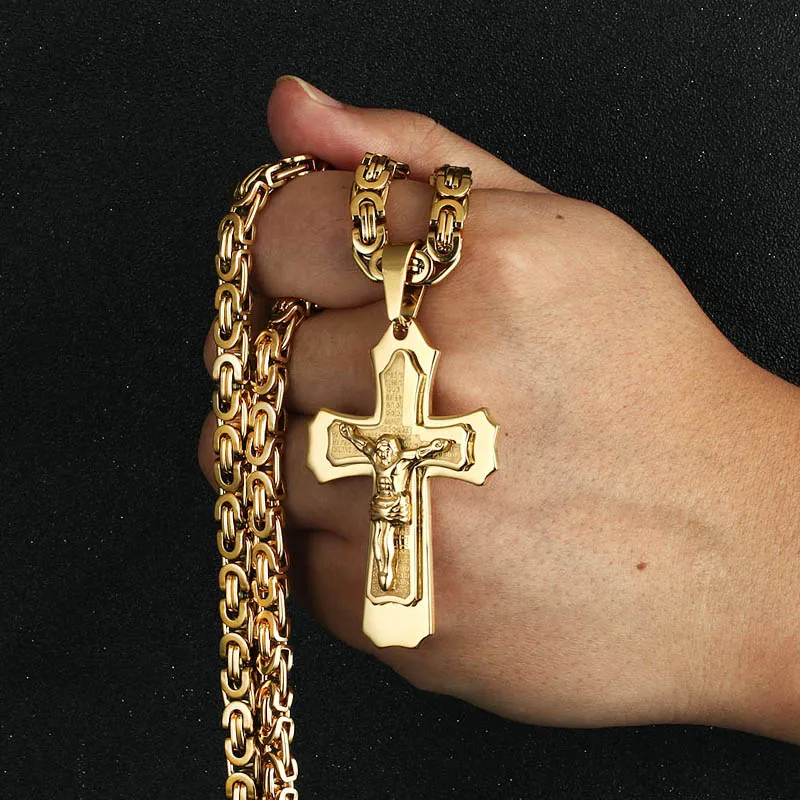 Византийское длинное ожерелье с подвеской в виде Креста Иисуса из нержавеющей стали, серебряный цвет, цепочка на шею для мужчин
