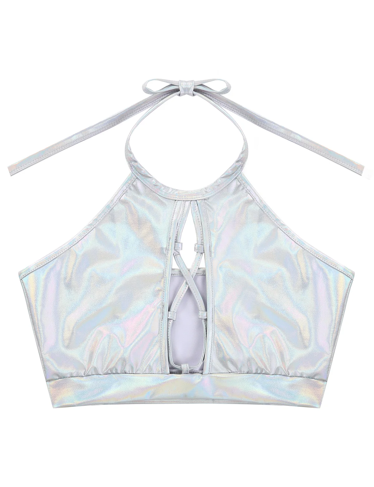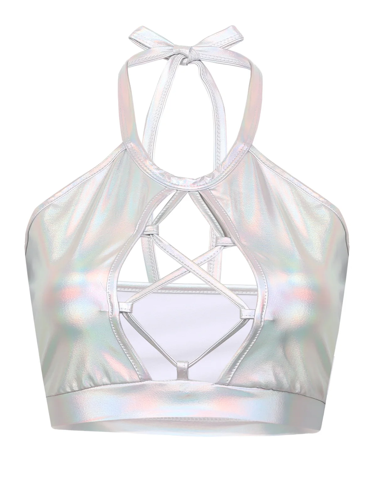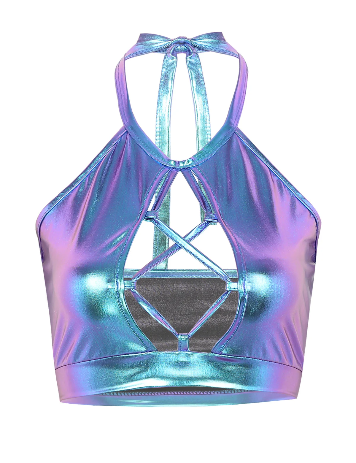 Женский жилет на бретельках с эффектом металлик wetlook, укороченная блузка на бретелях, застежка на пуговицах.