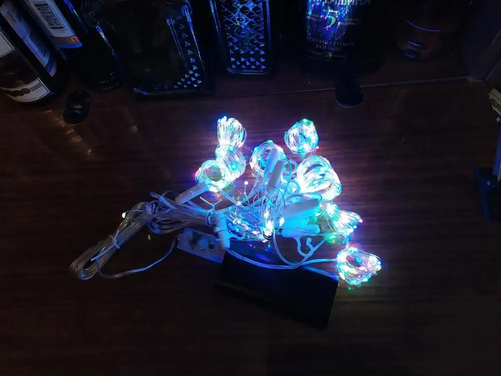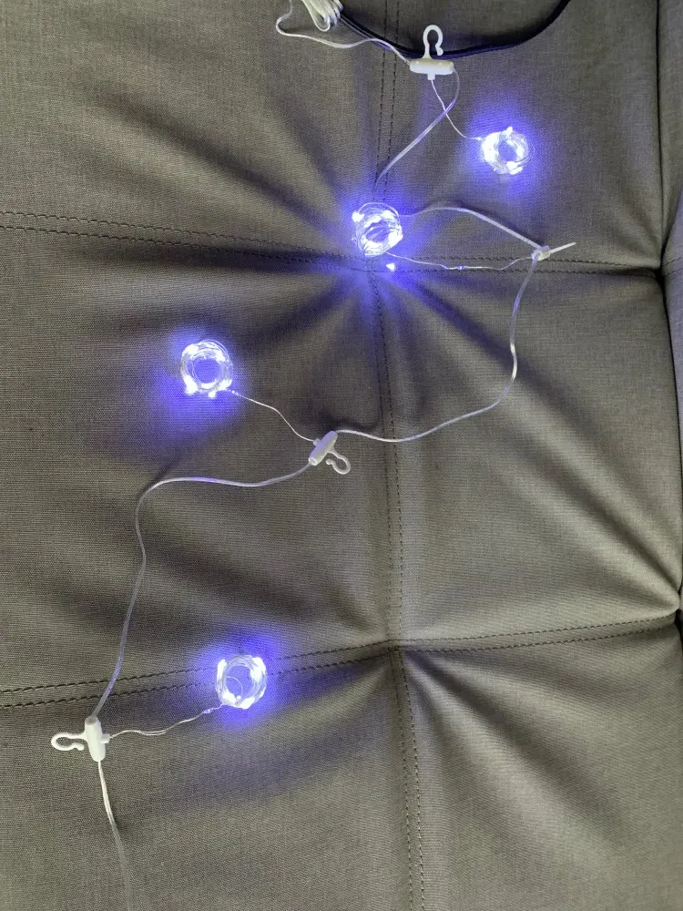 Гирлянда работает, проверил на всех режимах. Думал светодиоды будут крупнее, но оказалось они меньше спичечной головки. Провод полупрозрачный, что делает его мало заметным. Спасибо продавцу, отправил быстро.