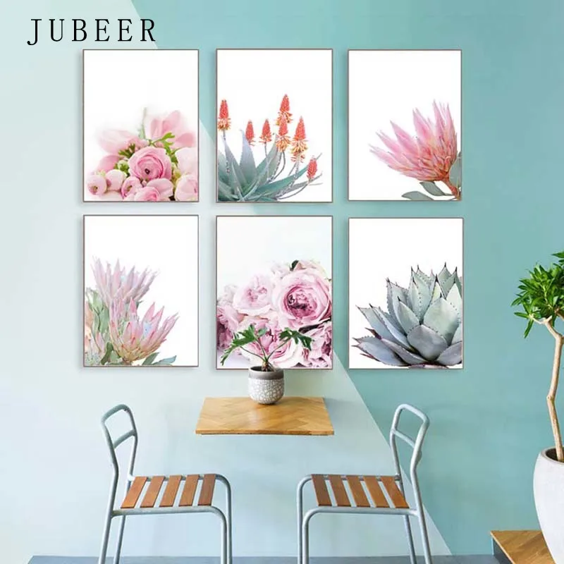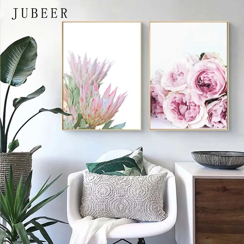 Настенные постеры в скандинавском стиле с цветами, Розовые настенны...