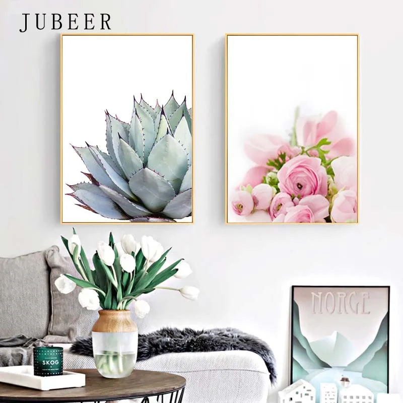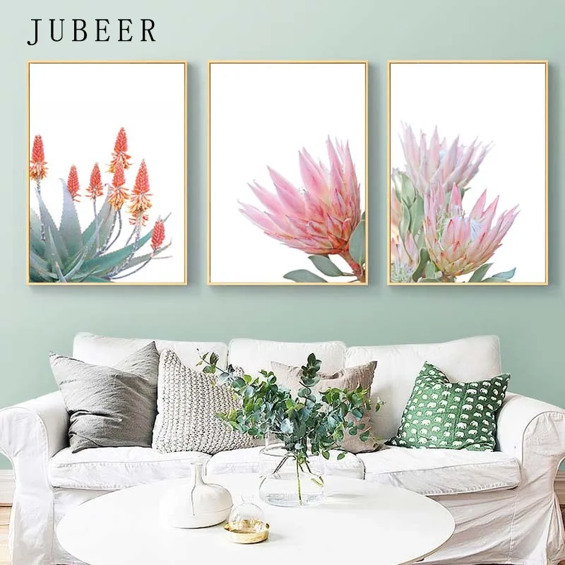 Суккуленты в скандинавском стиле, плакаты Safflower, печать на холсте, цветы, украшение на стену, картина для гостиной, Зеленый лист, постер