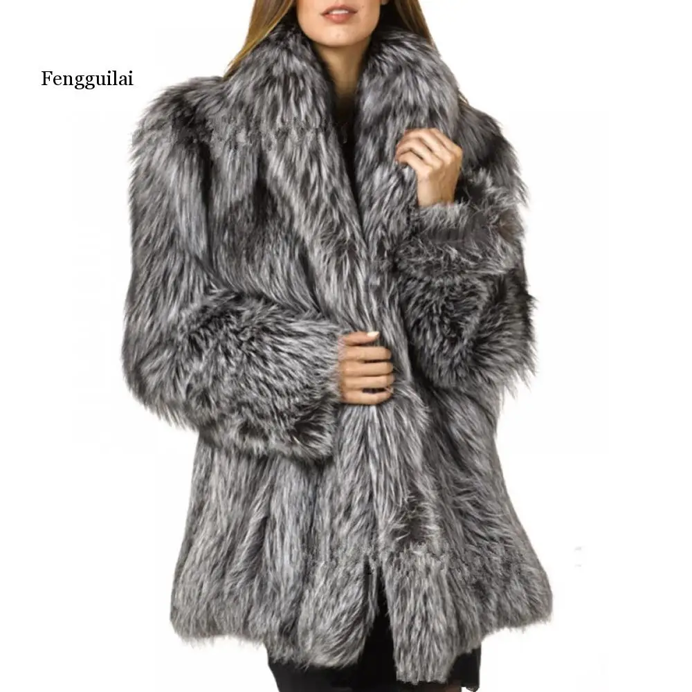 Модное женское зимнее пальто из искусственного меха, куртка из искусственного лисьего меха, длинные пальто из искусственного меха, женское меховое пальто, куртка