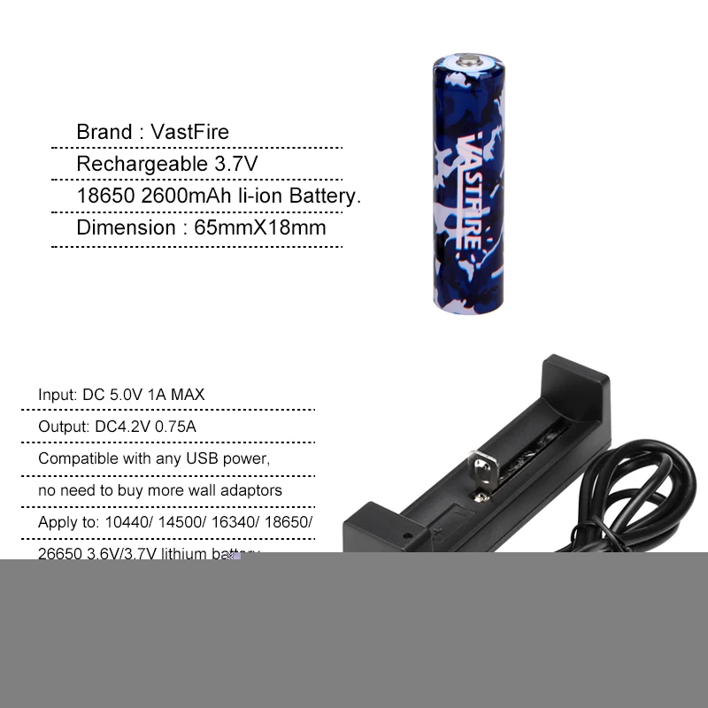 VA-802 USB Перезаряжаемый водонепроницаемый фонарь для разведчика 4...