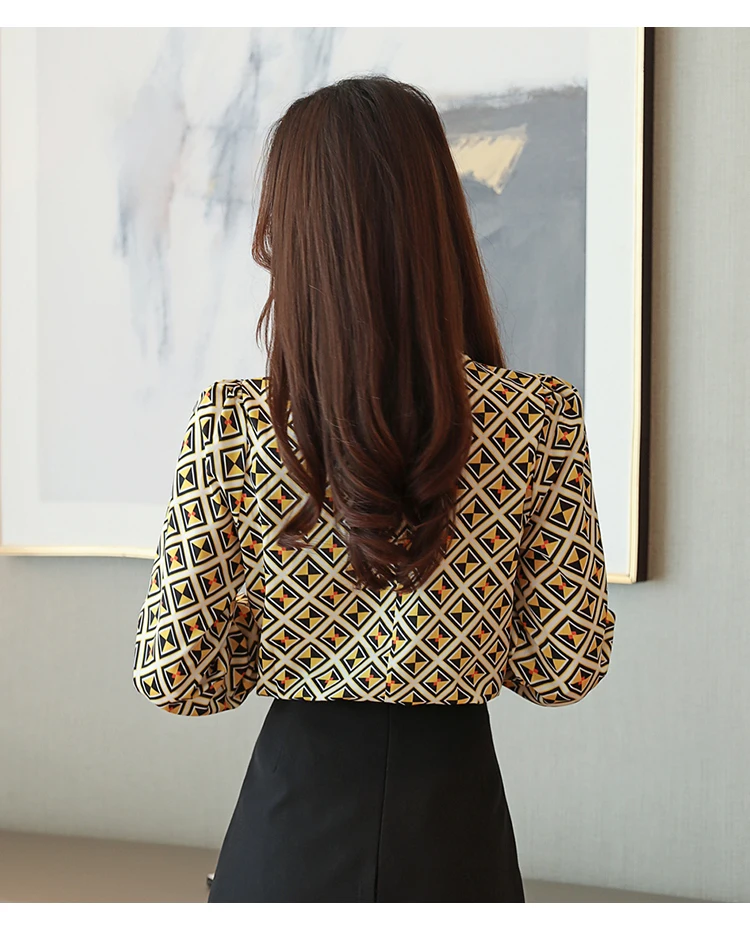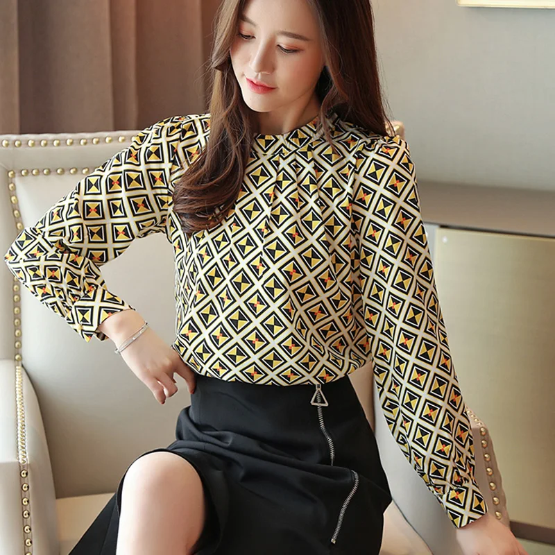 Блузка женская шифоновая с длинным рукавом, круглым вырезом и принтом