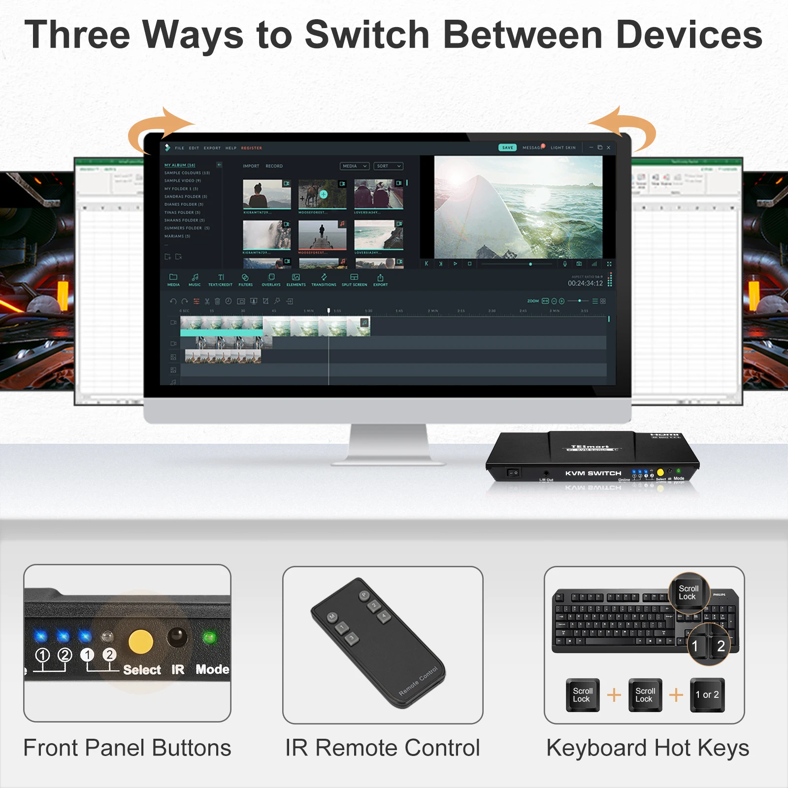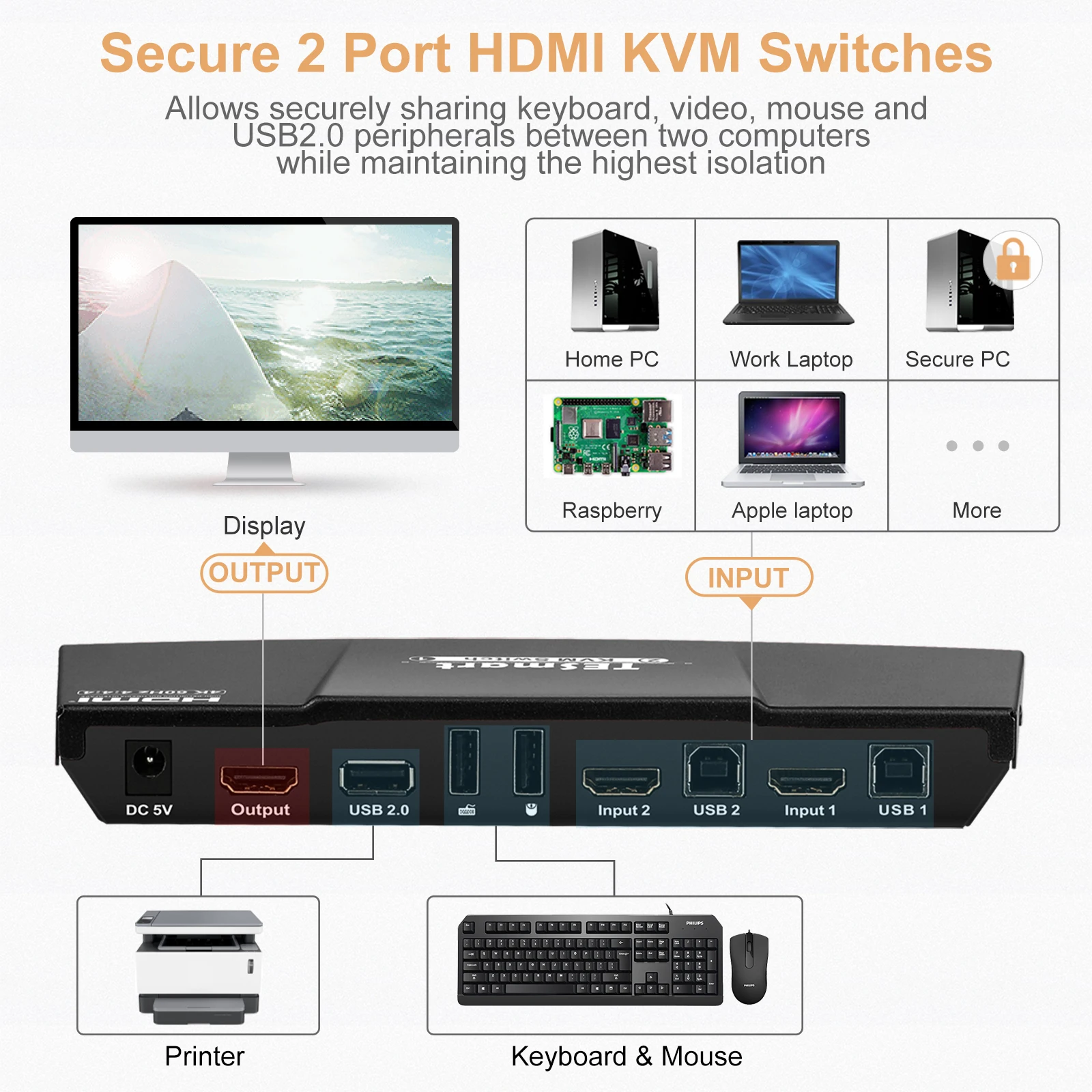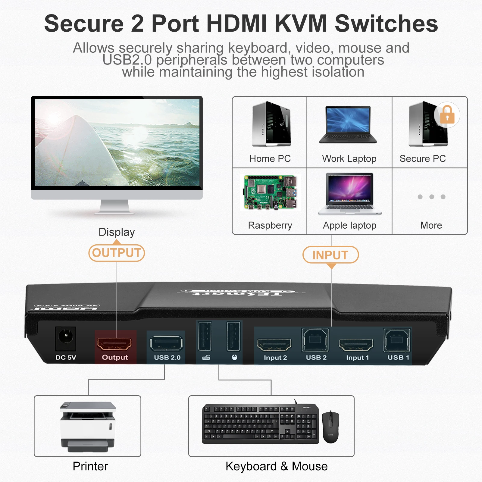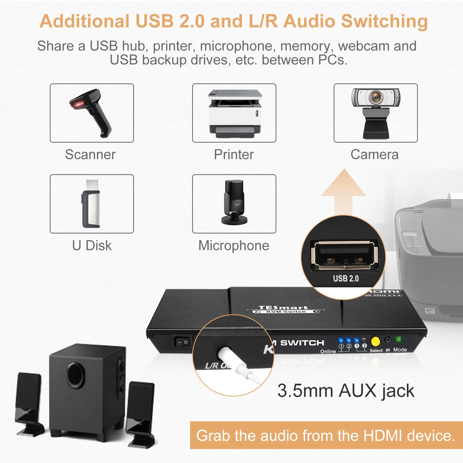 KVM-переключатель 4K HDMI, 2 порта HDMI, 2x1KVM-переключатель, 2 в 1, выход, поддержка USB, 2.0 портов, клавиатура и мышь