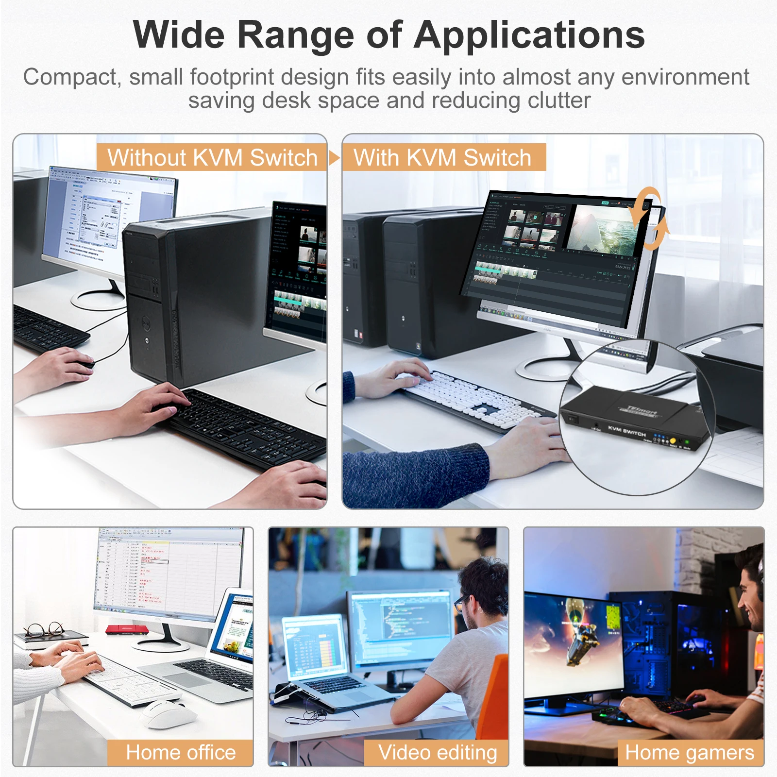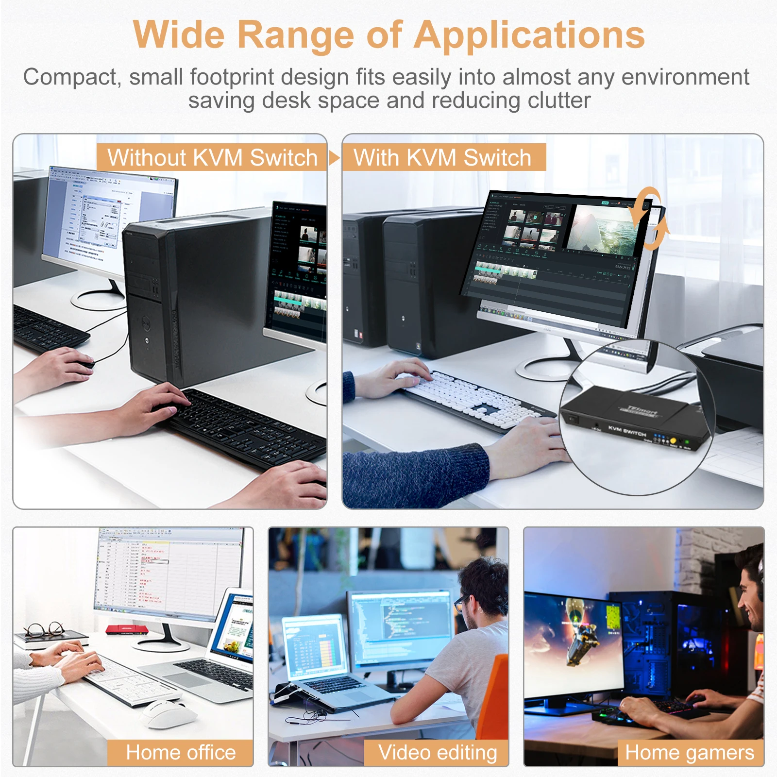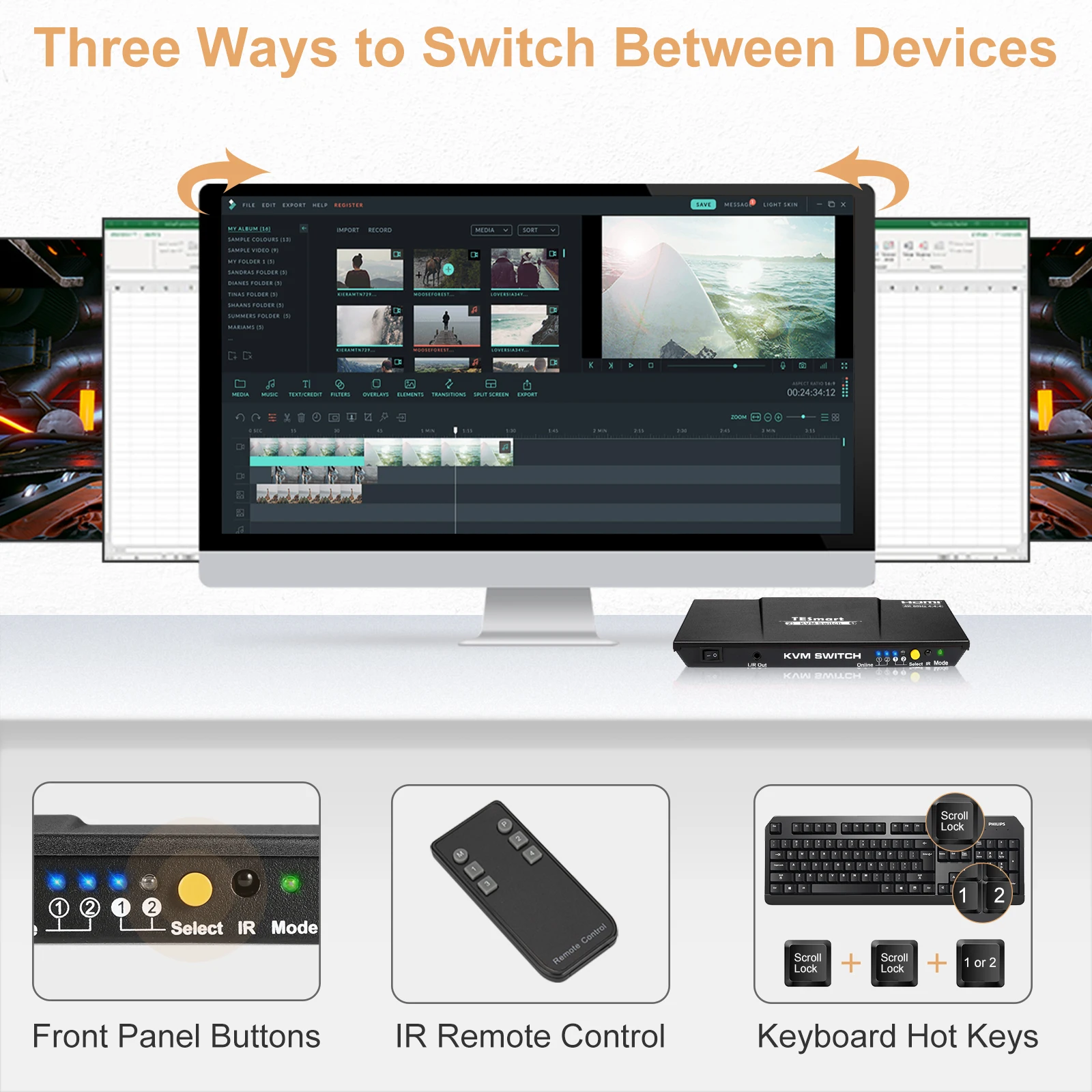 KVM-переключатель 4K HDMI, 2 порта HDMI, 2x1KVM-переключатель, 2 в 1, выход, поддержка USB, 2.0 портов, клавиатура и мышь
