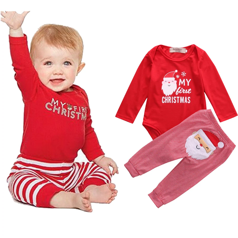 Лидер продаж, Рождественская одежда, комбинезон + штаны, комплект из 2 предметов, топы для маленьких мальчиков и девочек, комплекты одежды для новорожденных 0-18 месяцев