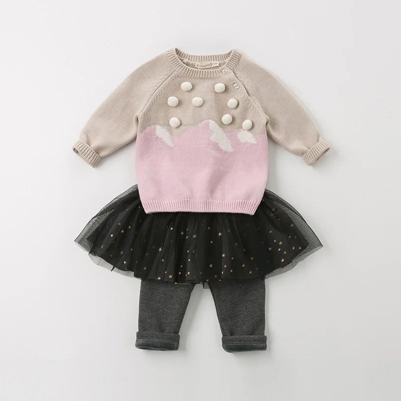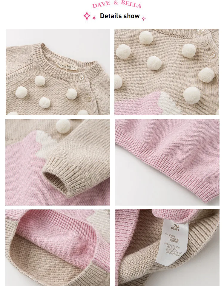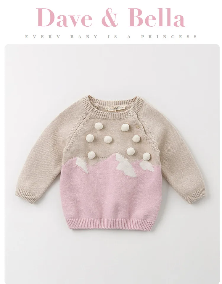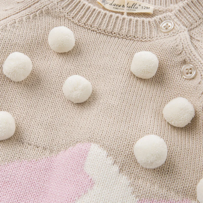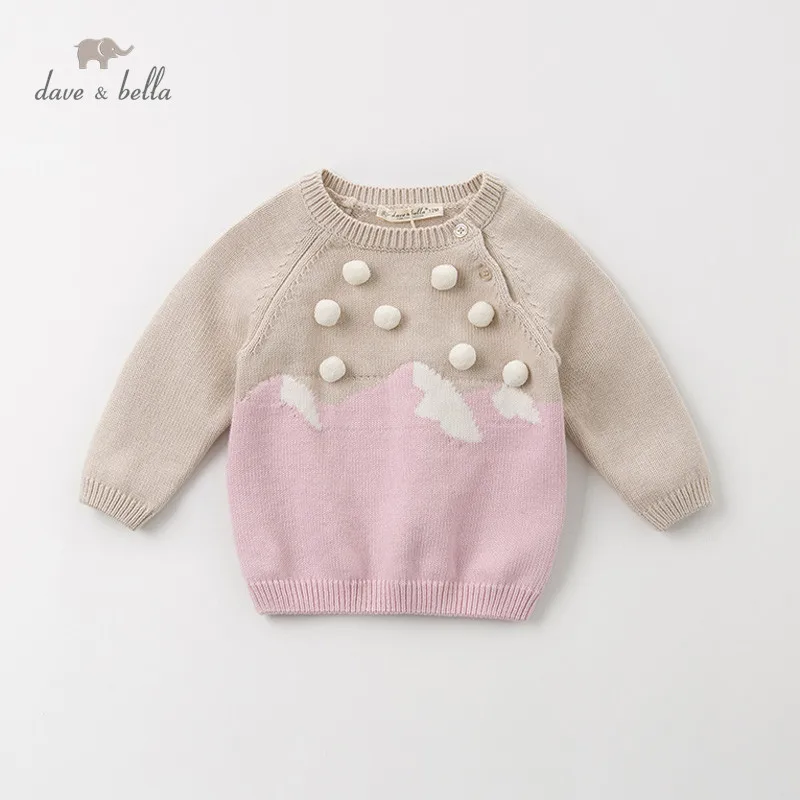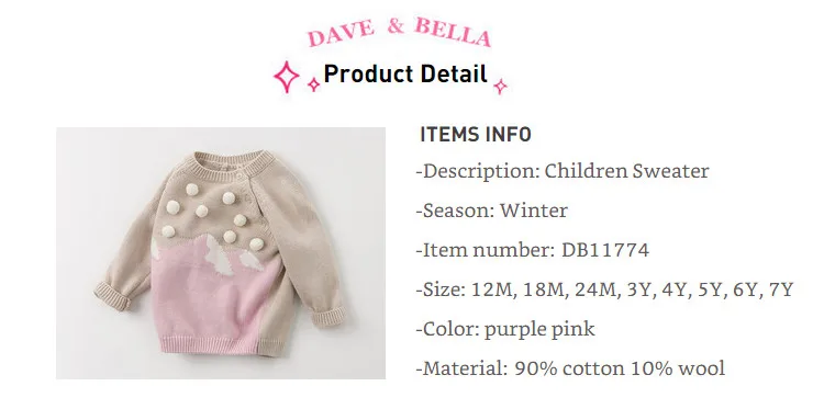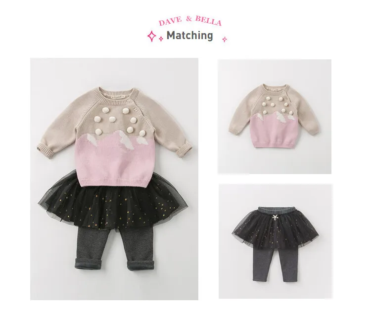 Зимний милый вязаный мягкий свитер для маленьких девочек DB11774, детский Модный пуловер, бутиковые топы для малышей