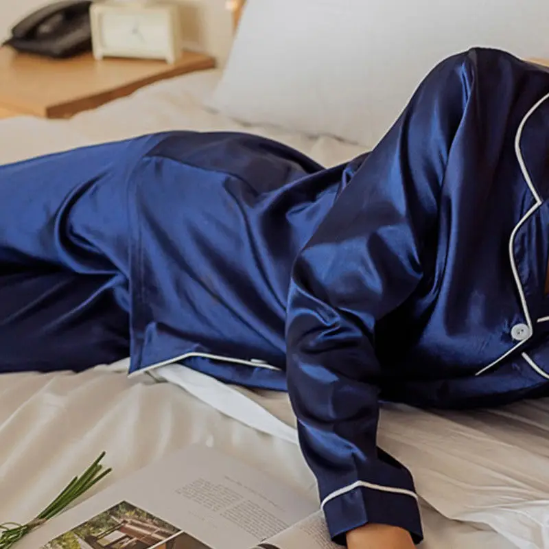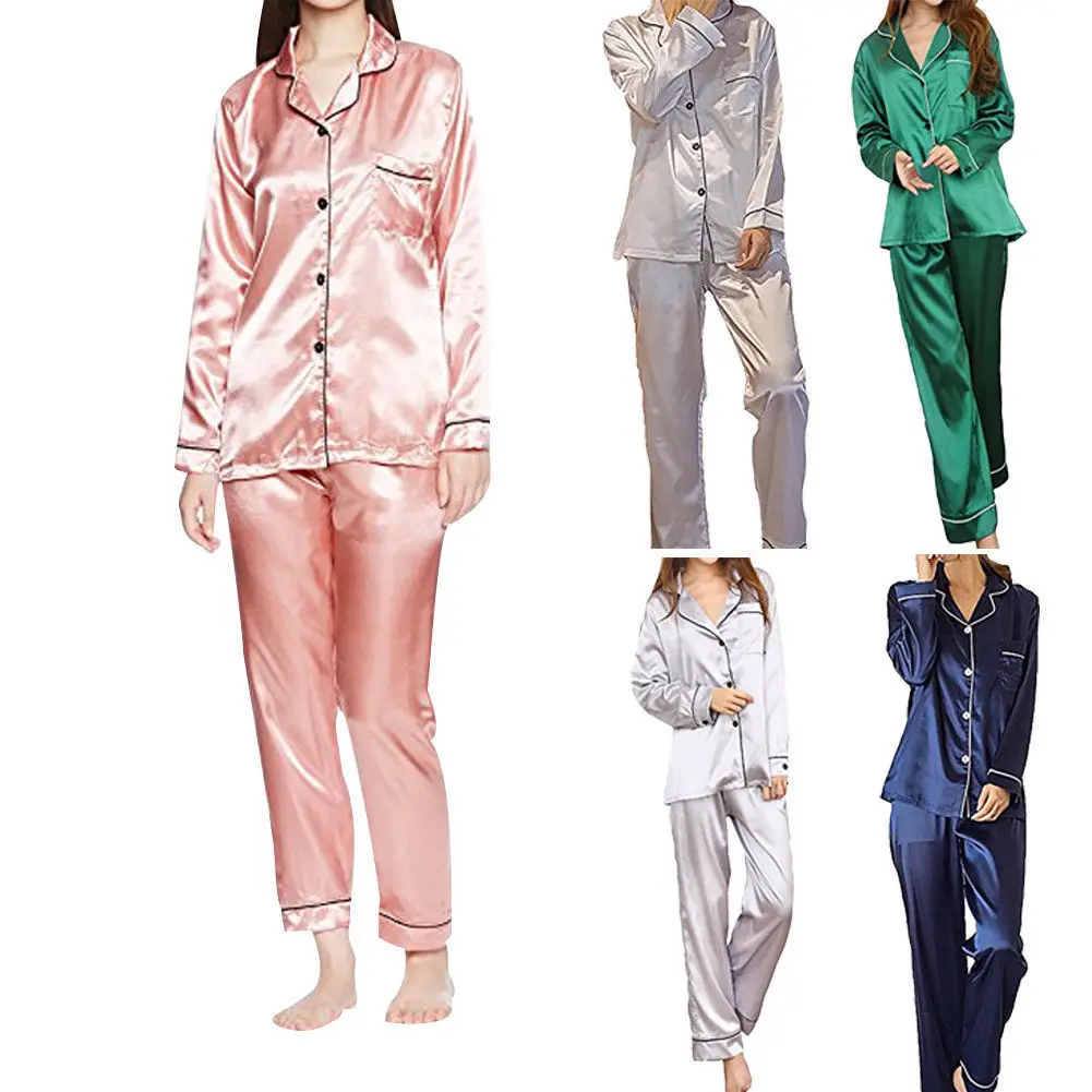 Женский атласный Шелковый пижамный комплект, рубашка с длинным рукавом, топ, длинные брюки, комплект для сна, домашний костюм, ночная рубашка