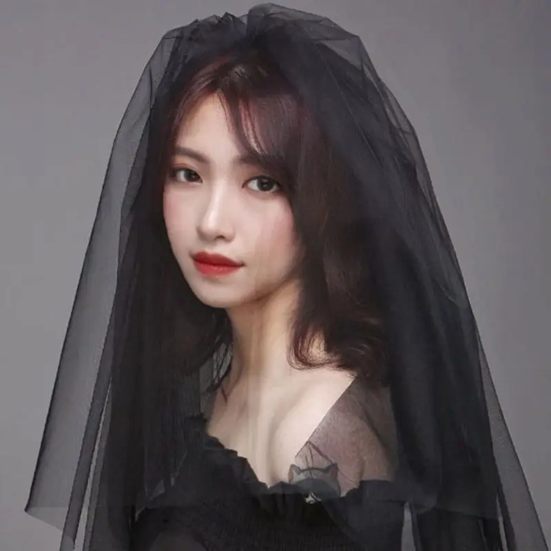 Фата свадебная Женская многослойная с гребнем, короткая из черного фатина для косплевечерние невесты, аксессуары для вечеринки и свадьбы на Хэллоуин