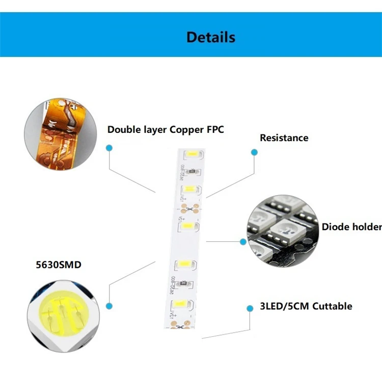 Диодная Светодиодная лента, 5 мрулон, 12 В постоянного тока, 5630, 300, ширина 10 мм, отрез 5 см, 14 Вт на метр, линейная лента, гибкая лента для внутреннего потолочного фона