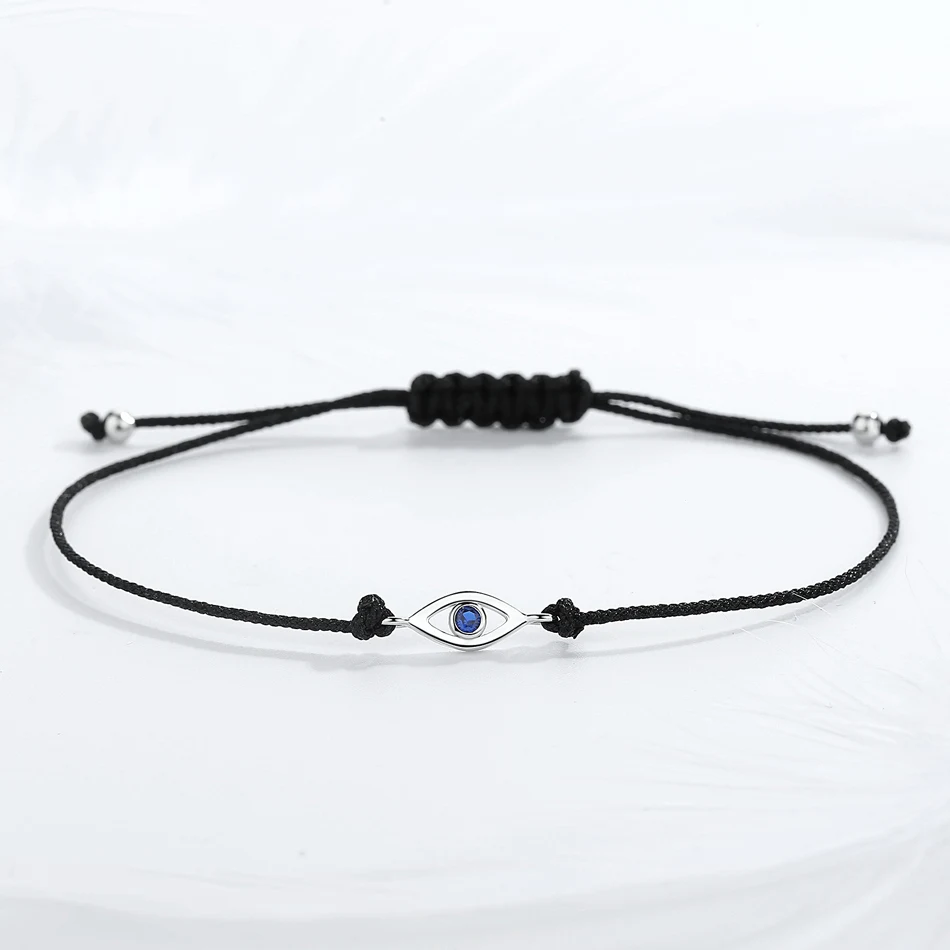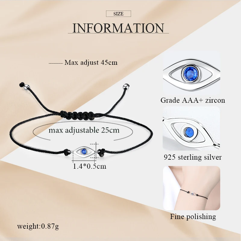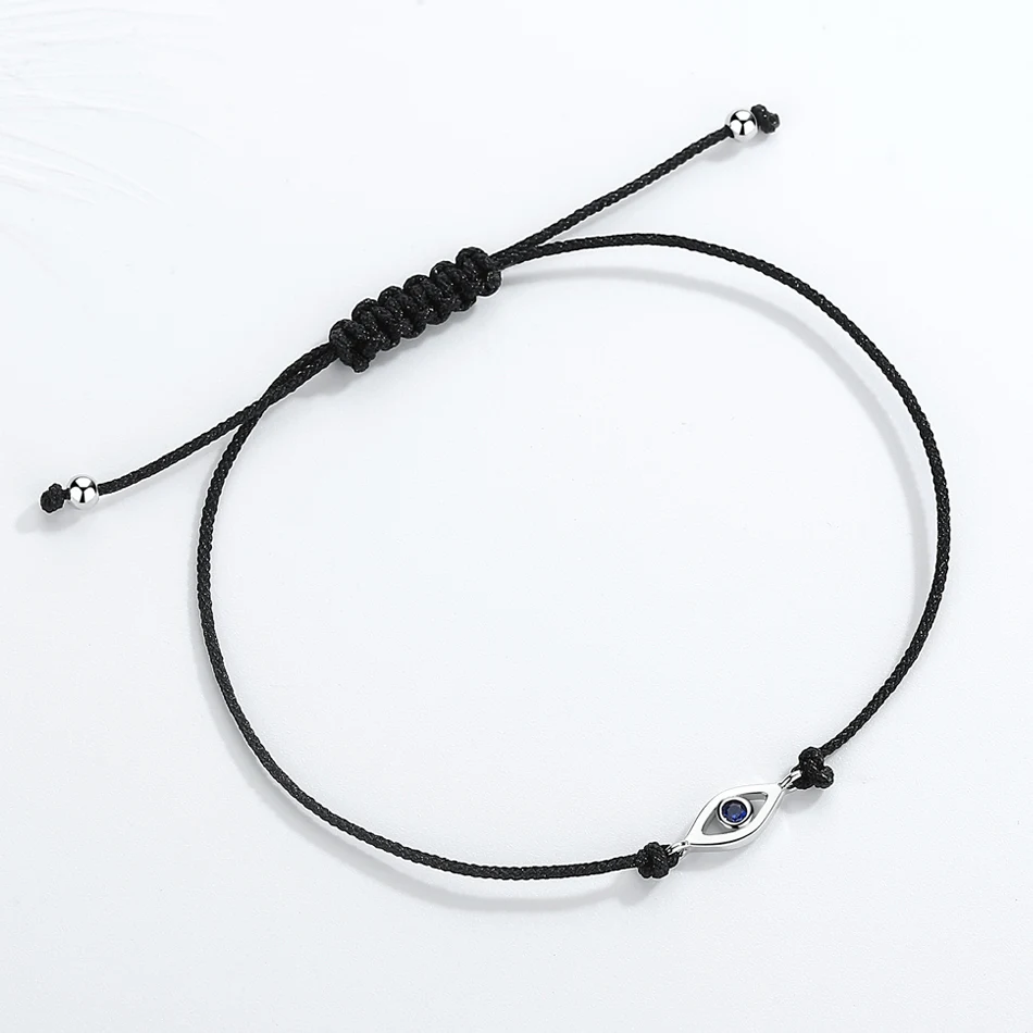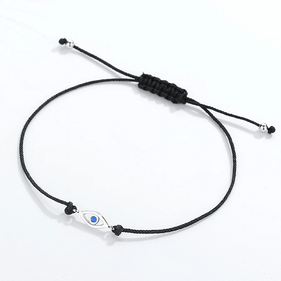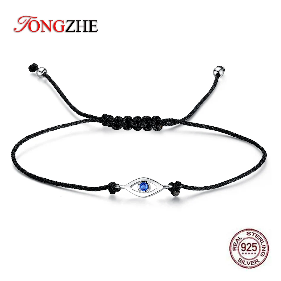 Женский браслет TONGZHE, браслет из стерлингового серебра 925 пробы с синим фианитом и сглаза, ювелирные изделия из Турции, черная регулируемая цепочка из веревки, подарок девушке