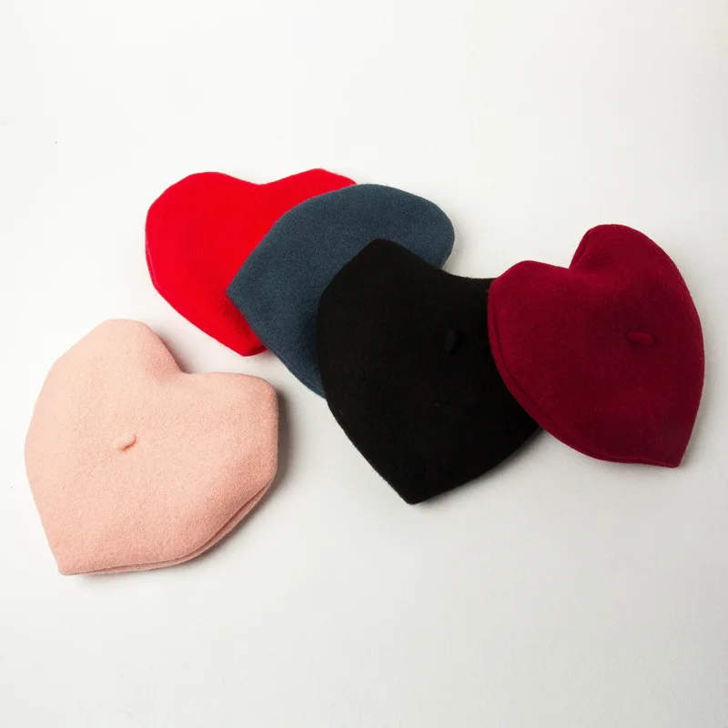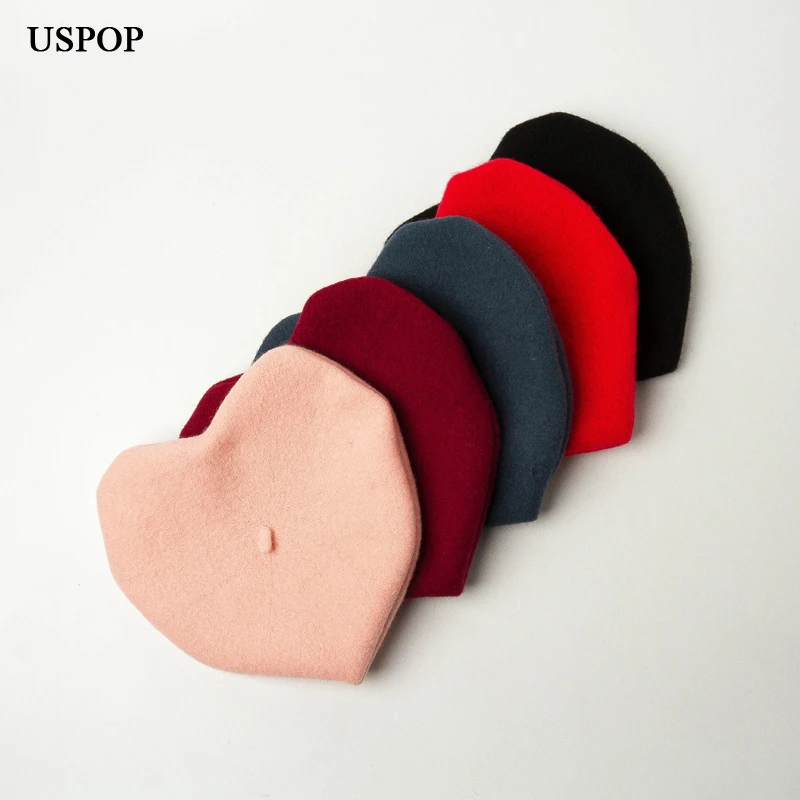 Новый Модный женский берет USPOP, женский зимний шерстяной берет в форме сердца, берет, однотонные теплые шерстяные шапки