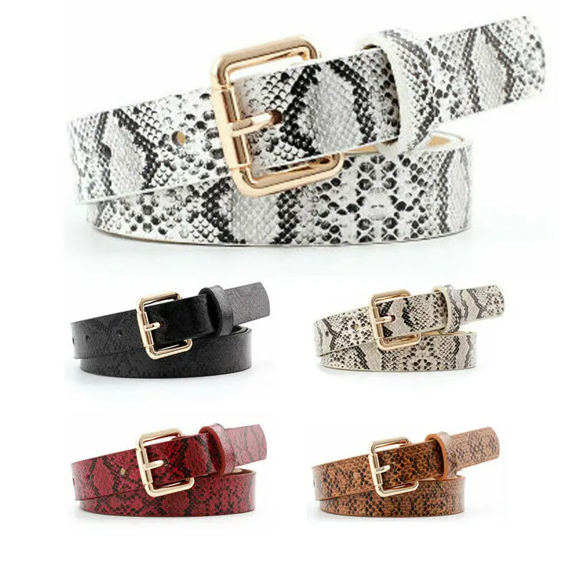 Ремень из искусственной кожи Женский, Модный повседневный пояс со змеиной кожей, с золотой металлической квадратной пряжкой