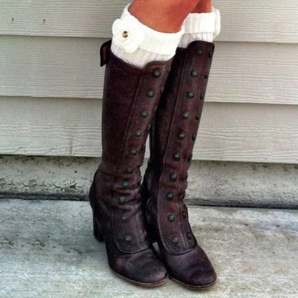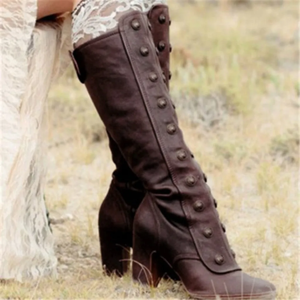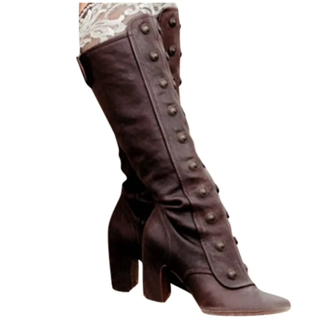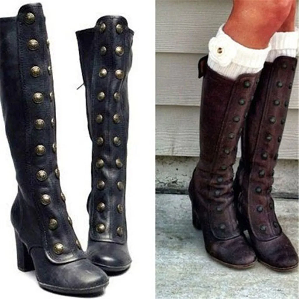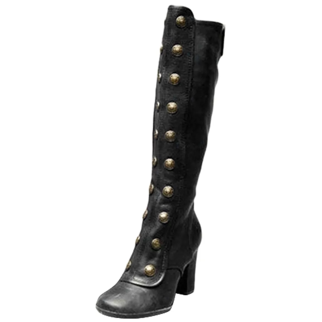 Женские сапоги до колена; Модные ботинки на молнии сбоку; Обувь на высоком каблуке в стиле ретро; Высокие сапоги