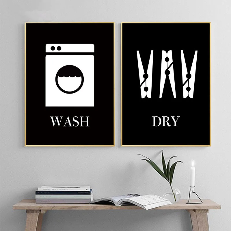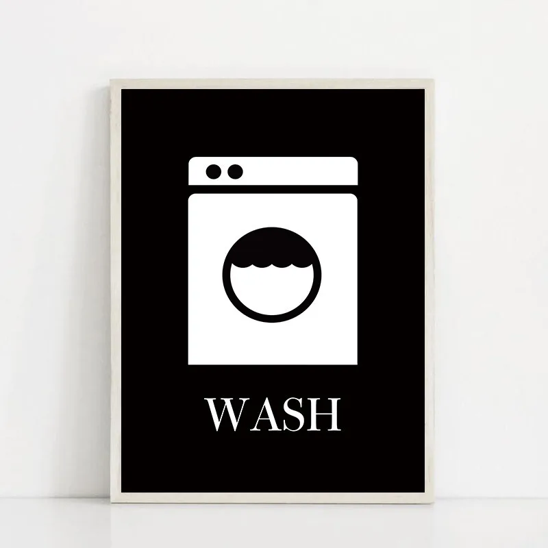 Стирка, сухая печать, табличка с надписью прачечной, Настенный декор, черно-белая настенная живопись, плакат, стирка, Художественная печать, картины для ванной комнаты YX139