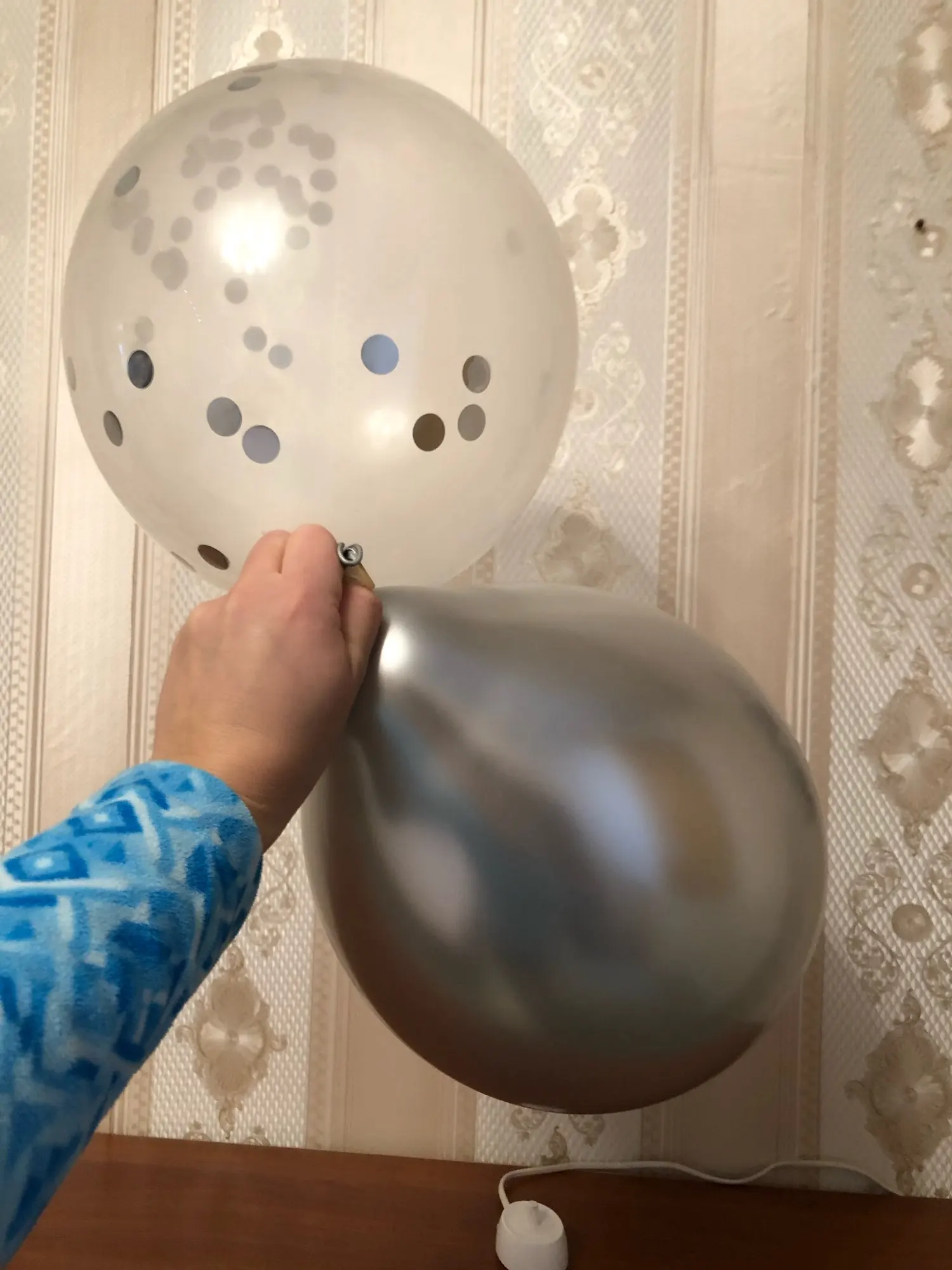 Они наносят ссылки на воздушные шары, чтобы конфетти не выходил, очень хорошая идея❤️