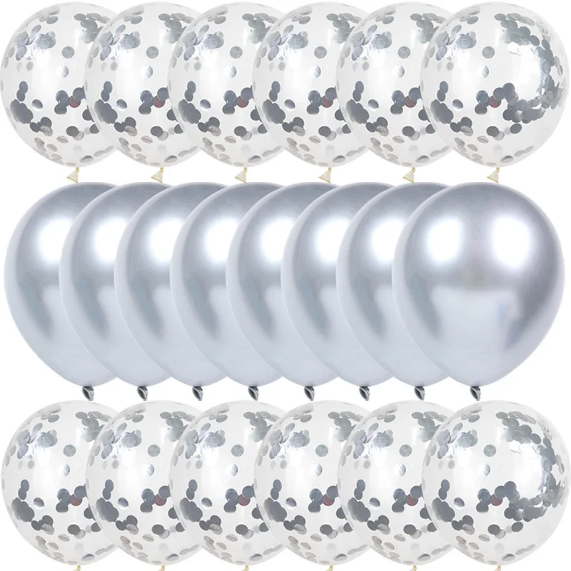Шары воздушные металлические, хром, 20 шт.набор, шары с золотыми конфетти