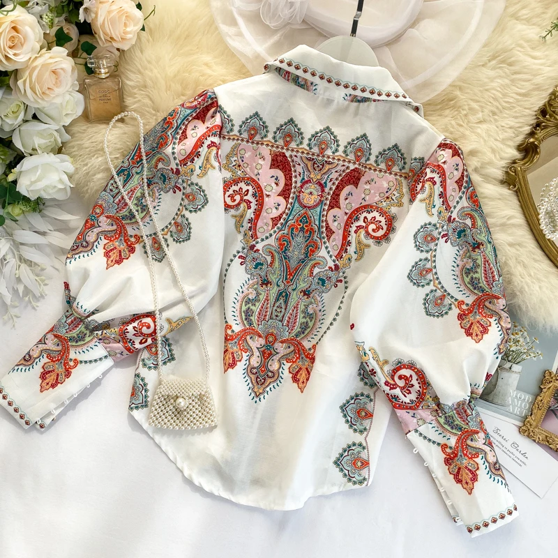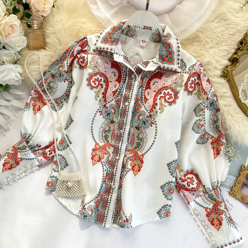 Женская рубашка с длинным рукавом-фонариком, в стиле ретро