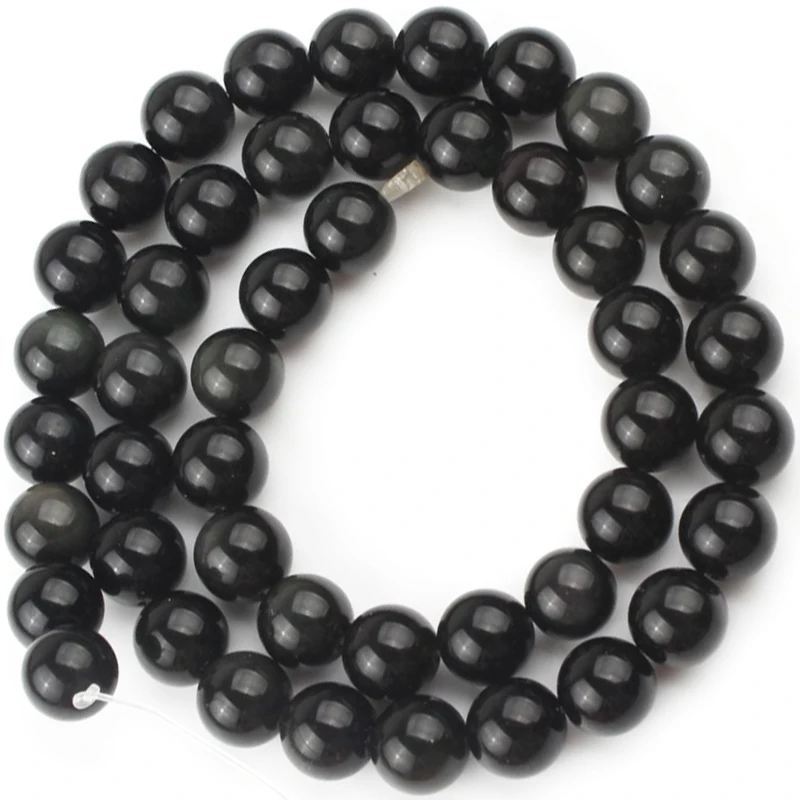 Бусины из натурального камня, черный обсидиан, круглые бусины россыпью для изготовления ювелирных изделий сделай сам, аксессуары для браслетов 4, 6, 8, 10, 12 мм