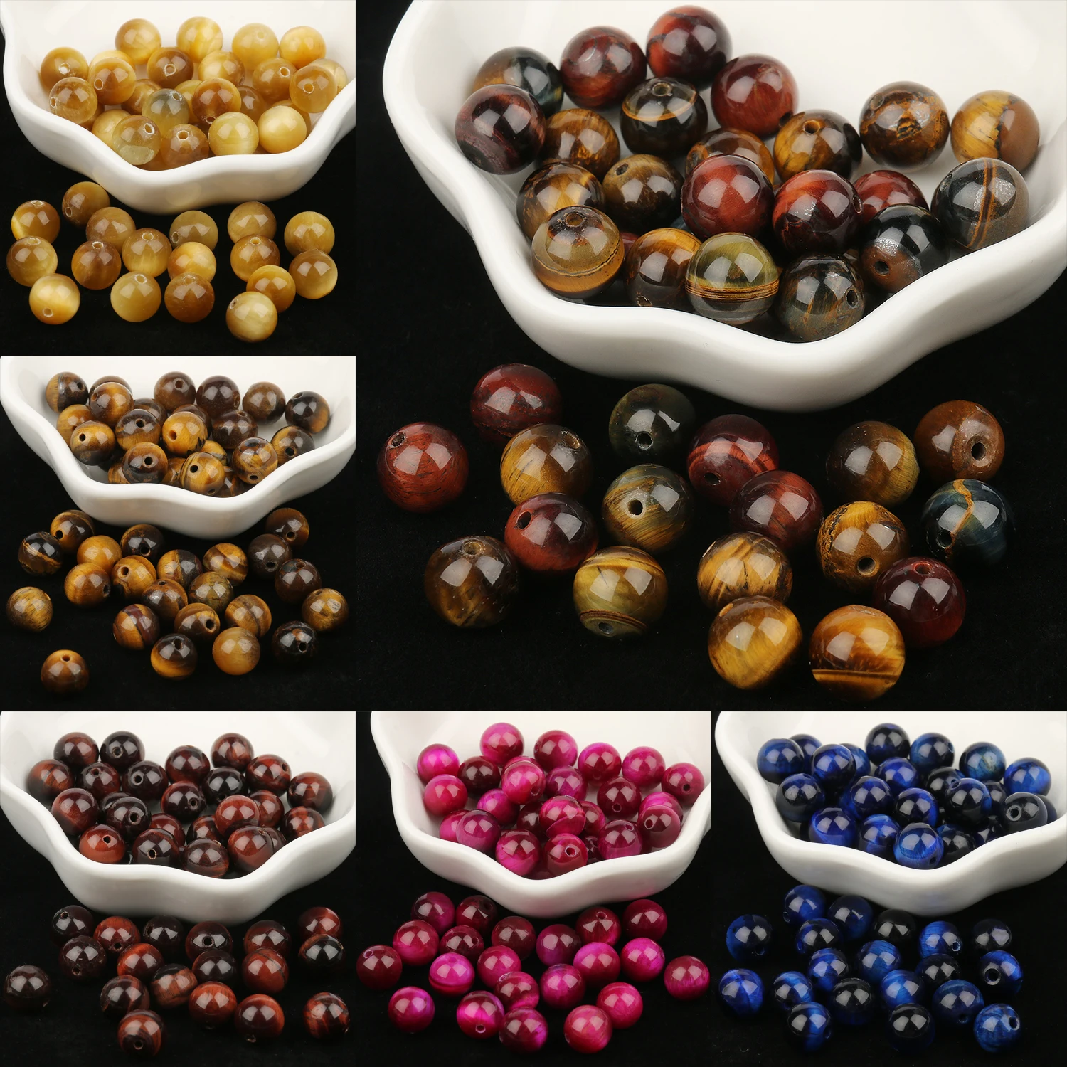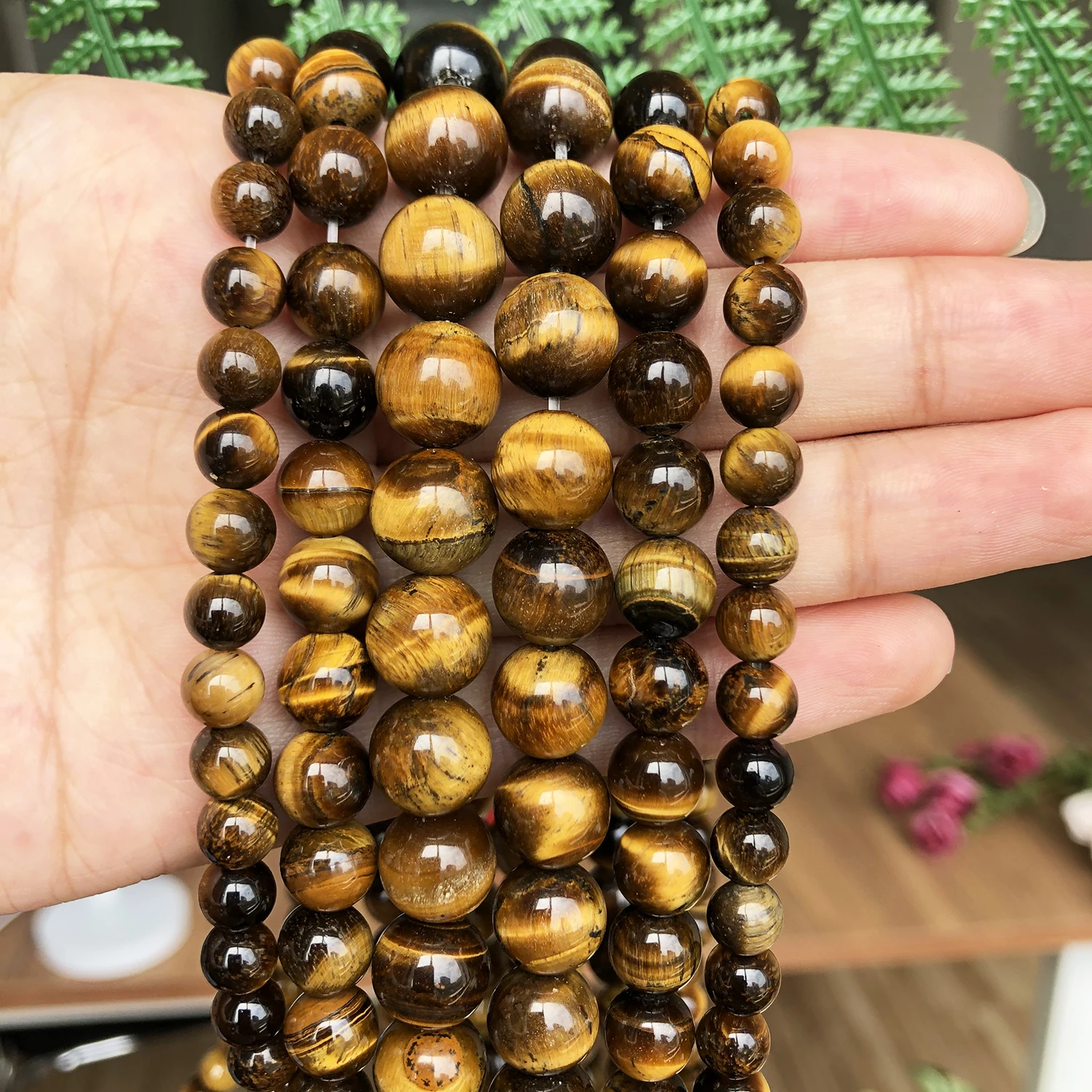 Круглые бусины с натуральным желтым тигровым глазом, высококачественные бусины россыпью для изготовления ювелирных украшений, аксессуары для браслетов 4, 6, 8, 10, 12 мм