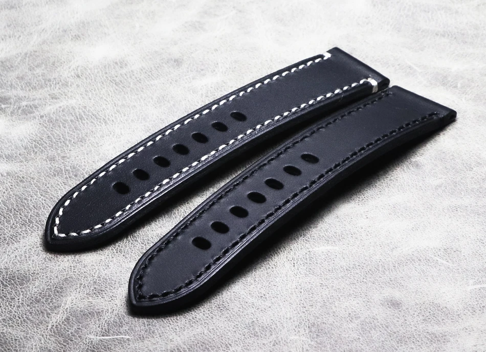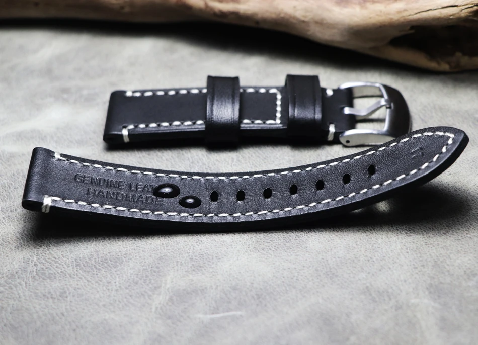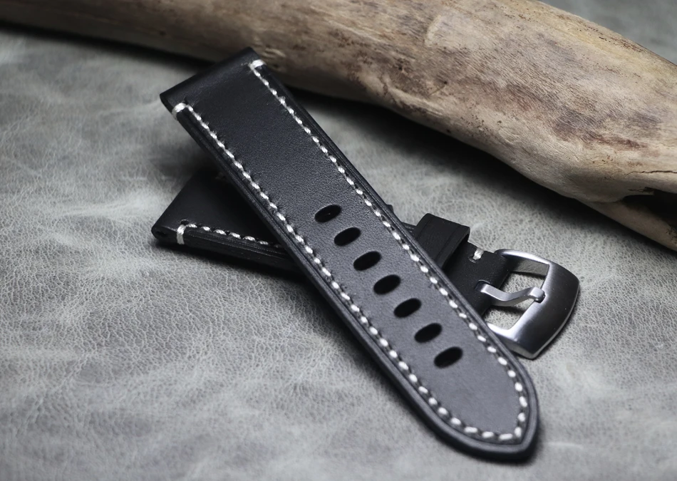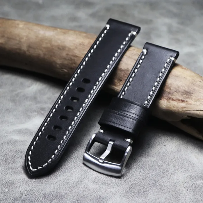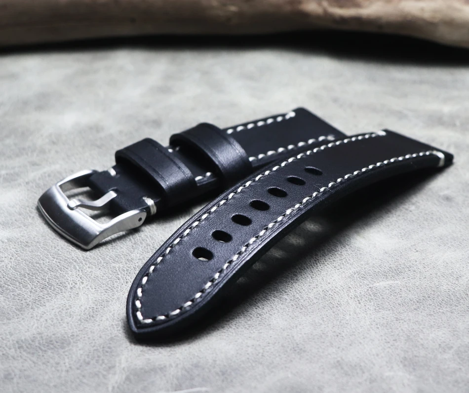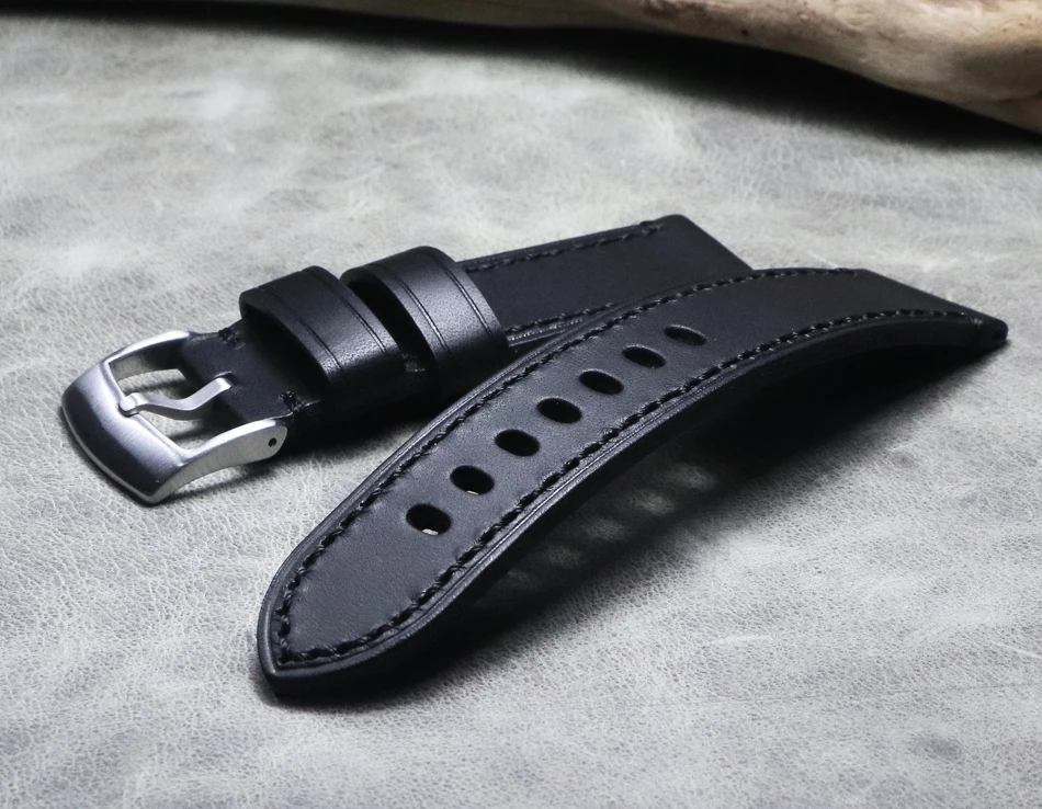 Высококачественный Итальянский черный кожаный ремешок ручной работы...