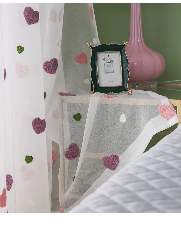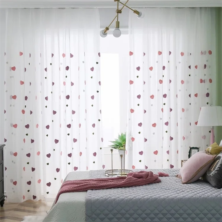 Тюлевые шторы для девочек, в современном стиле, с мультяшным 3D рисунком сердца, сплошная занавеска для гостиной на заказ X521 #4