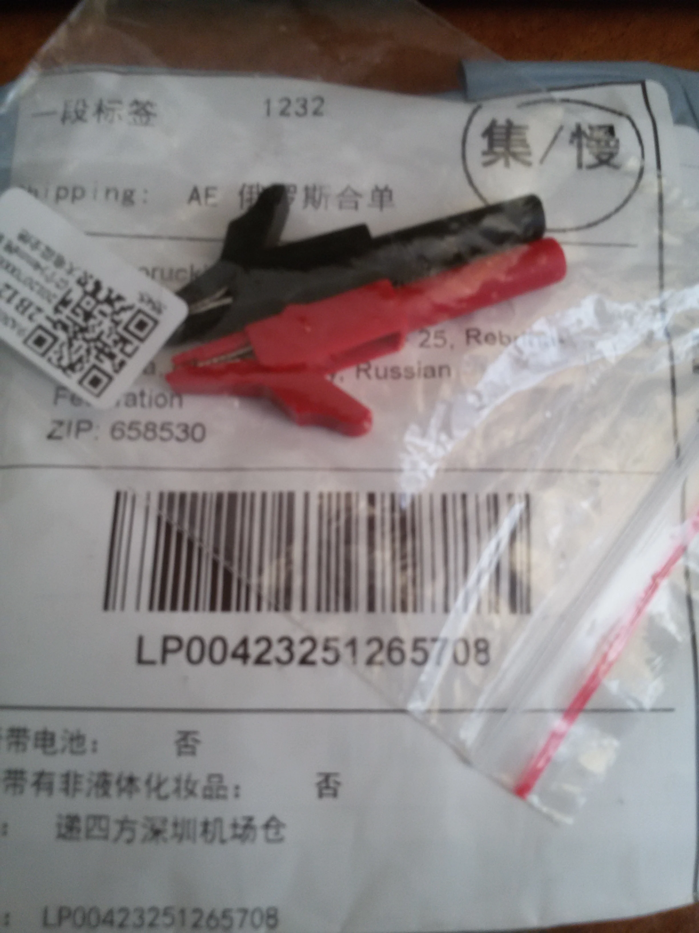 Быстрая доставка до Питера. В сборной посылке. К моему тестеру не подошли. Но тот конец щупов от тестера, который входит в тестер, входит и в эти крокодильчики. Думаю их как то можно использовать в хозяйстве.