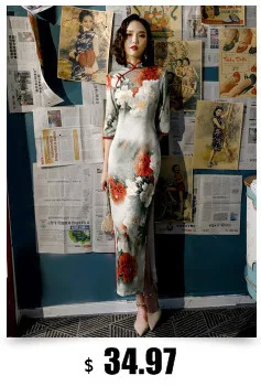 Женское длинное платье Ципао, традиционное китайское платье Ципао с...
