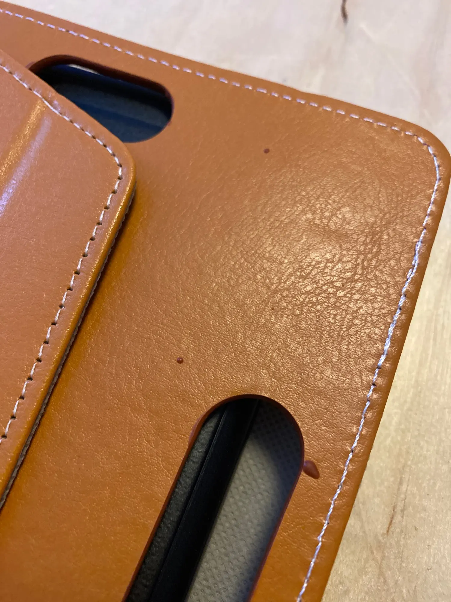 Цвет на фото не соответствует действительности. Заказывала коричневый, пришёл какой-то рыжий. Вертикально планшет стоит неустойчиво в этом чехле и все время скатывается, падает. Ожидала большего от этого чехла. Одна из панелей заляпана каплями пластика. Вид дешевый .