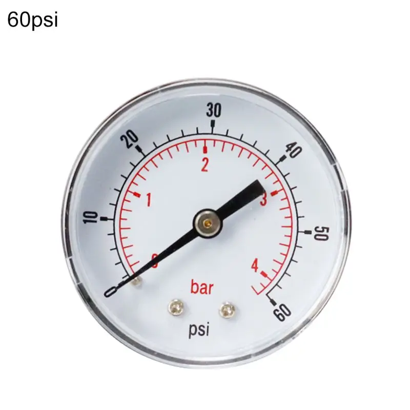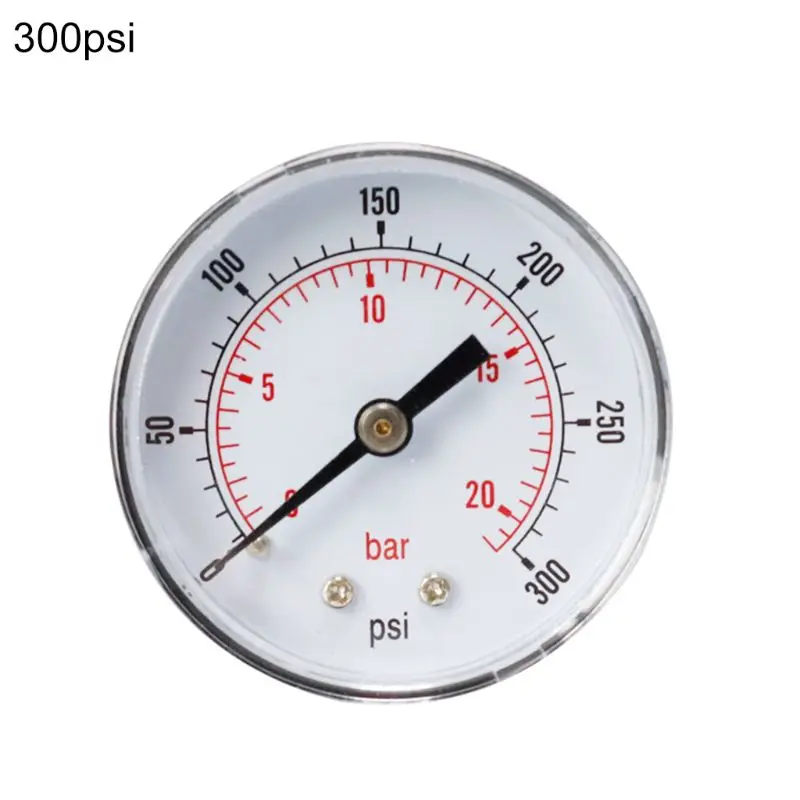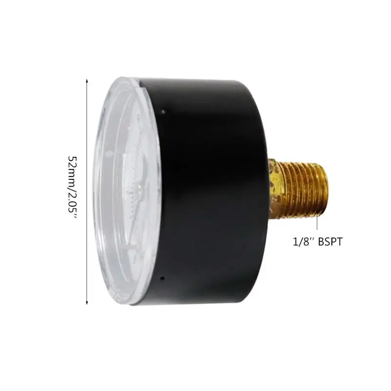 Осевой манометр 52 мм, циферблат измерения гидравлического давления 18 BSPT, горизонтальный 015,30,60, 100160300 PSI бар, заднее крепление