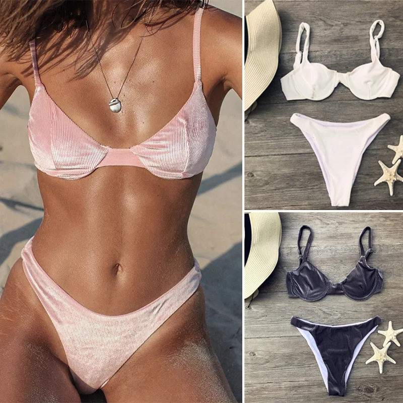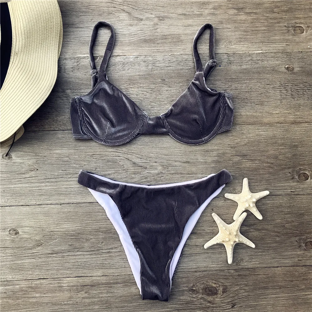 Бархатный купальник бикини 2021 Mujer пикантные купальники Falbala ...