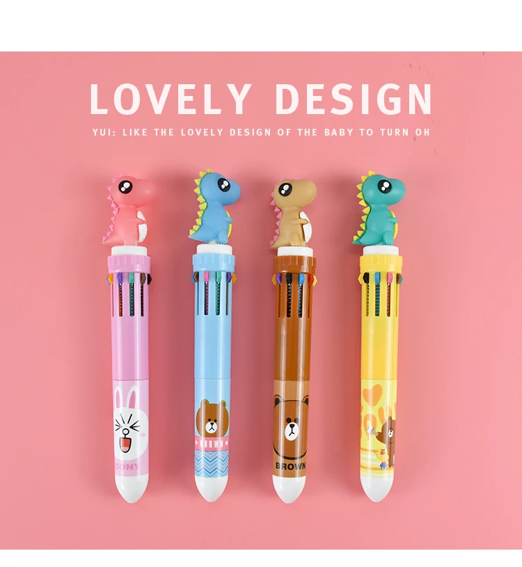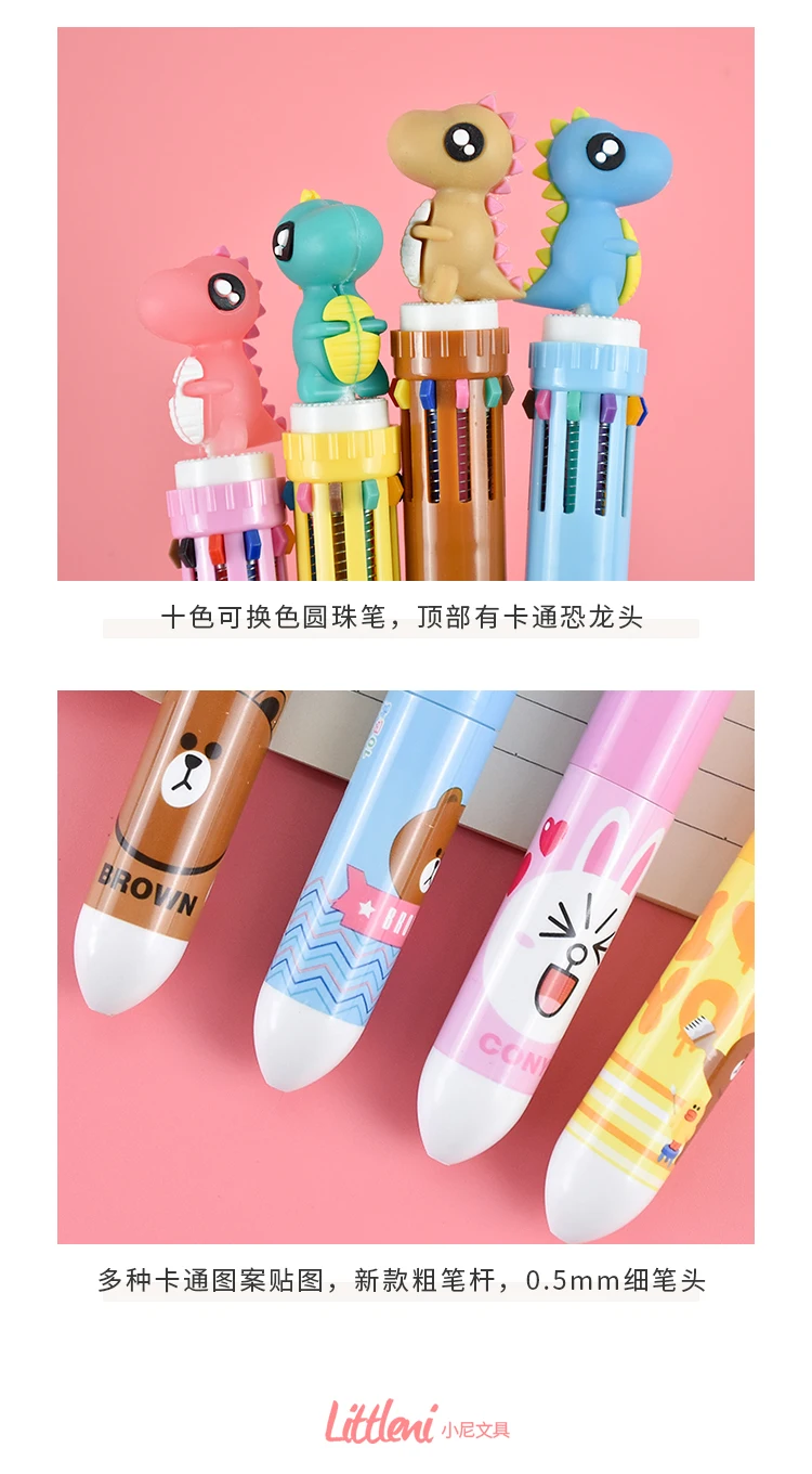 Шариковая ручка с милым динозавром. С героями мультфильмов, 10 видов цветов. Нажмите шариковую ручку. Студенческая многофункциональная шариковая ручка