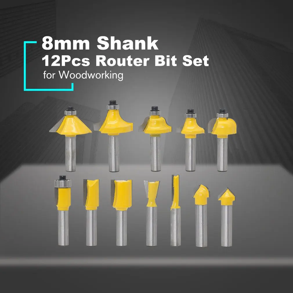 12 шт.компл. фреза Набор инструментов фреза для деревообработки Карбид хвостовик отделки дерева гравировальный инструмент