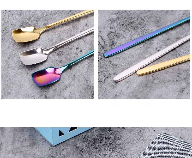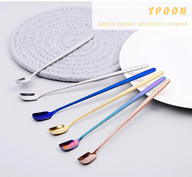 Красочные ложка с длинной ручкой, столовые приборы Кофе инструменто...