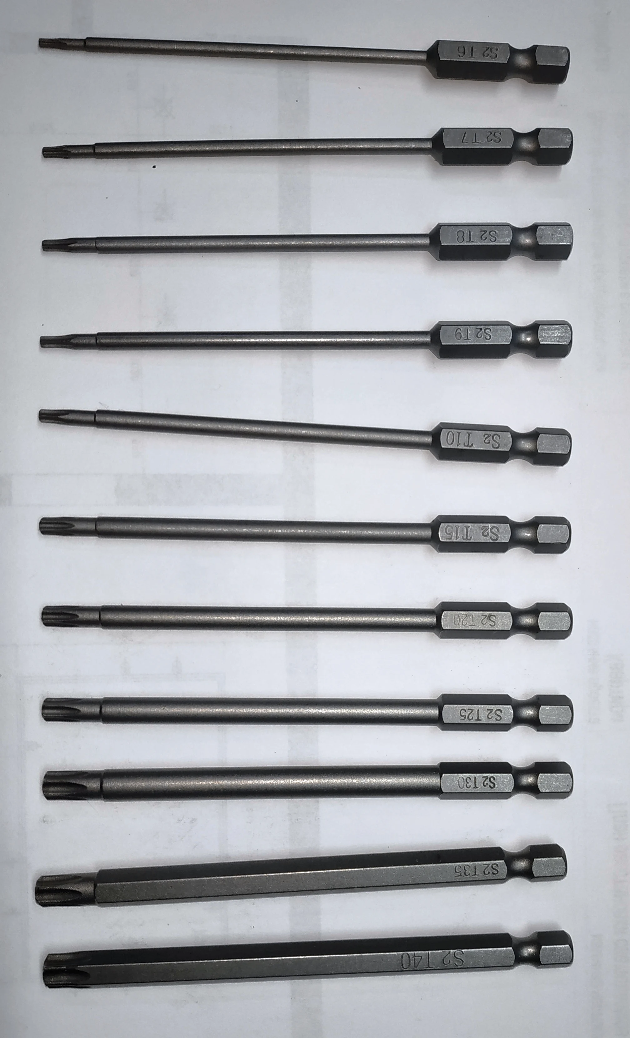 Просто работа для глубоко утопленных винтов безопасности torx, используемых многими производителями. Используется для демонтажа нашего Bosch аккумуляторного переменного тока для замены изношенного аккумуляторного блока. Без сомнения, они пригодятся в будущем.