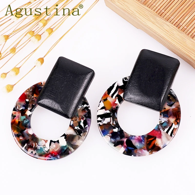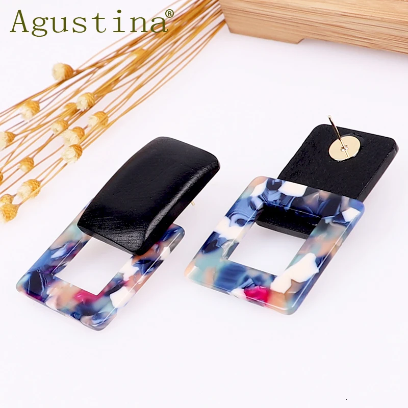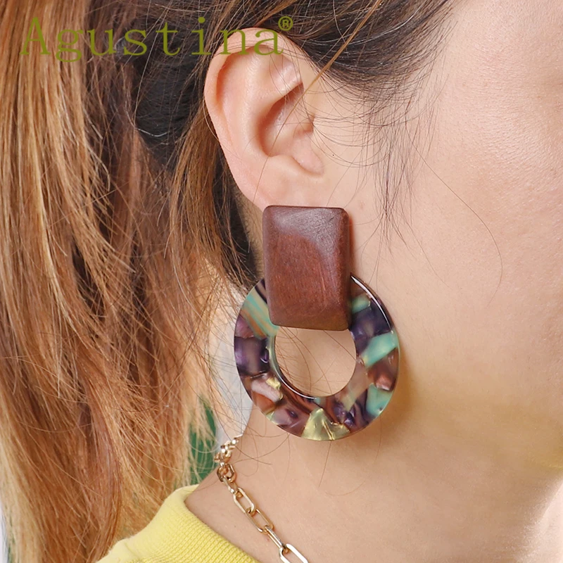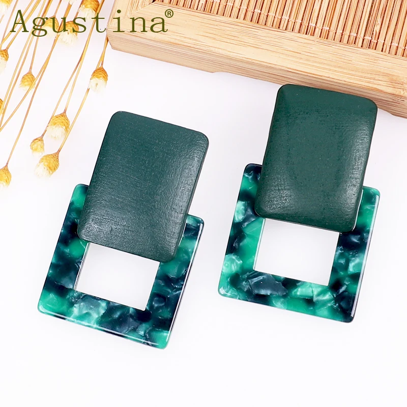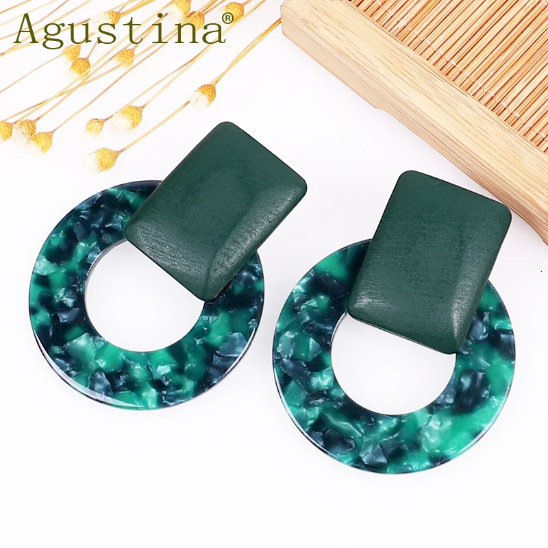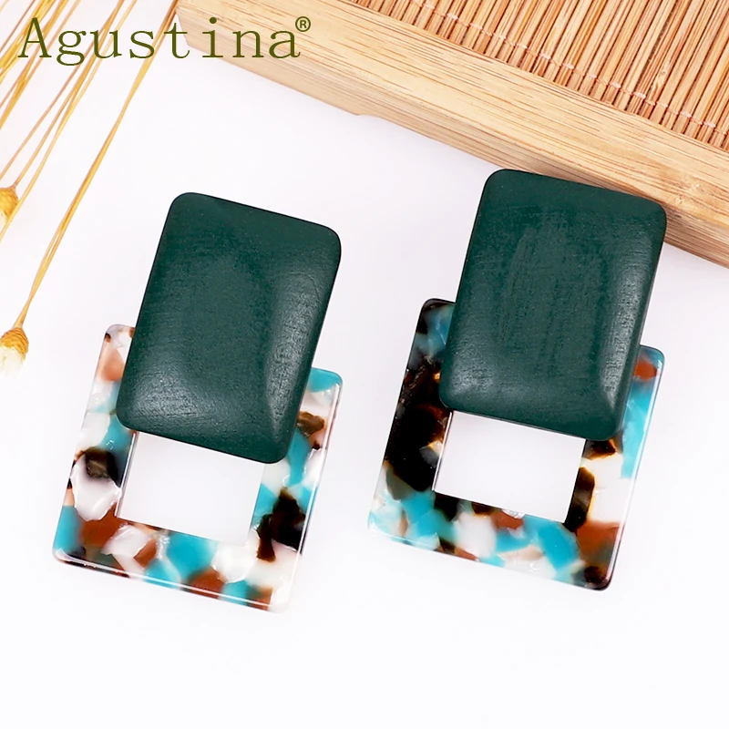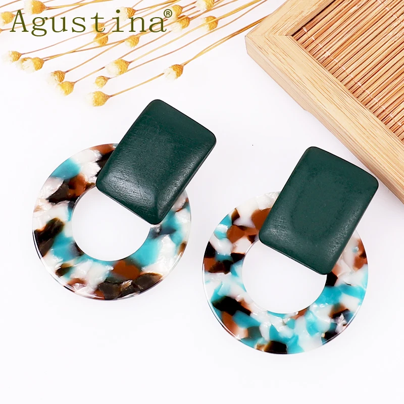 Деревянные ацетатные модные серьги Agustina, ювелирные изделия для девочек, висячие серьги для женщин, зеленые радужные серьги, серьги в стиле панк, серьги в стиле бохо cc