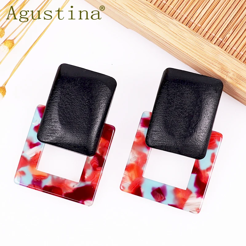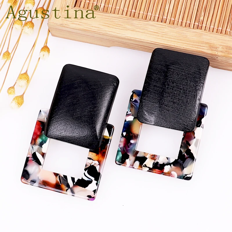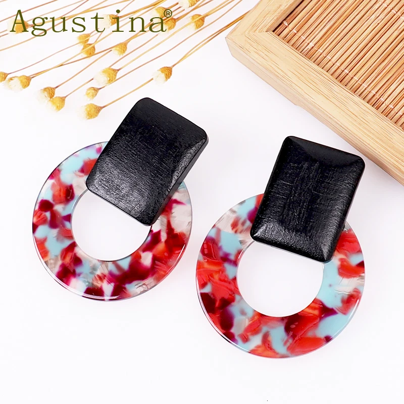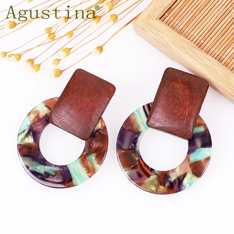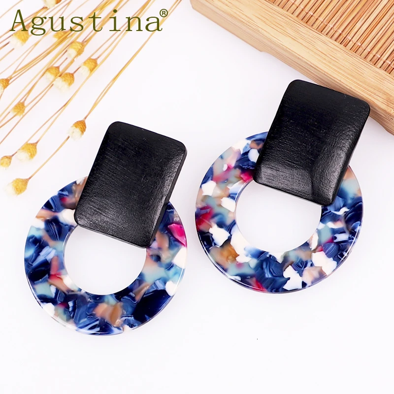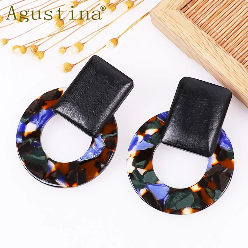 Деревянные ацетатные модные серьги Agustina, ювелирные изделия для девочек, висячие серьги для женщин, зеленые радужные серьги, серьги в стиле панк, серьги в стиле бохо cc