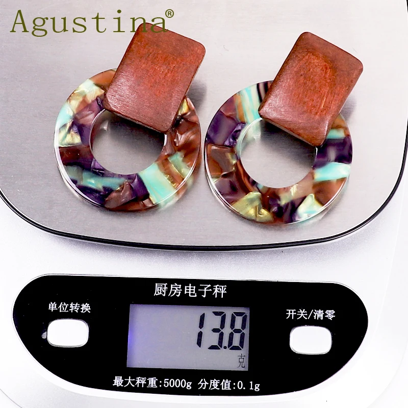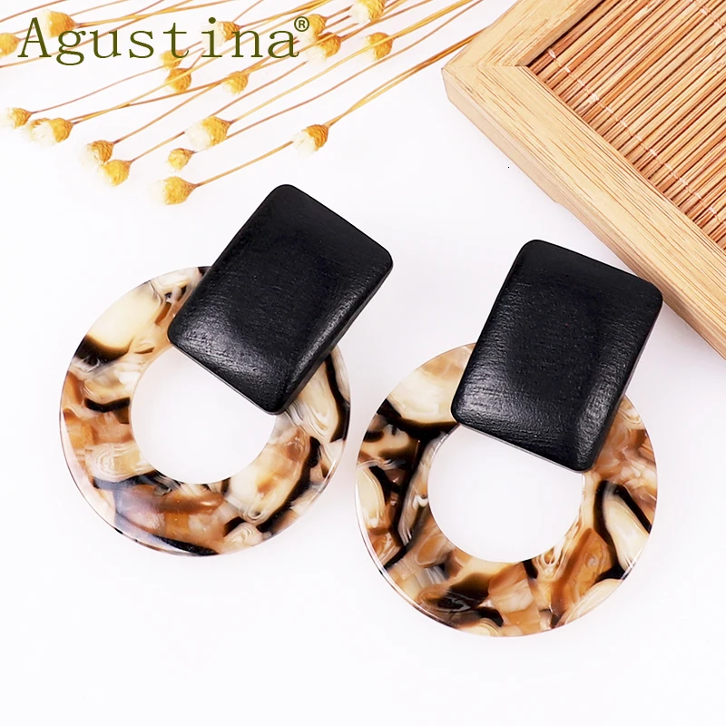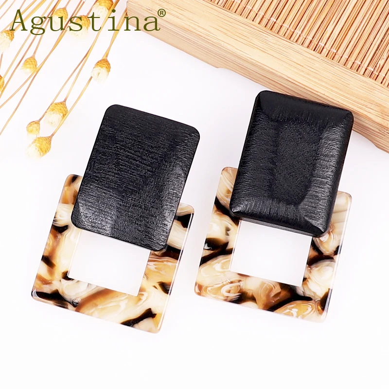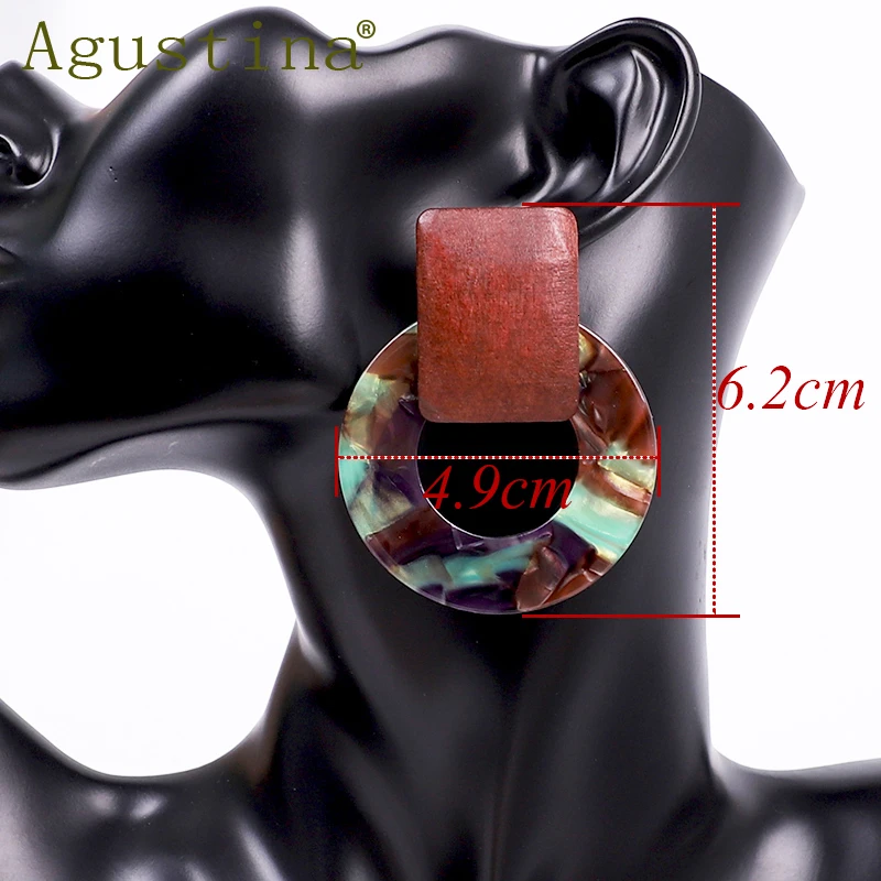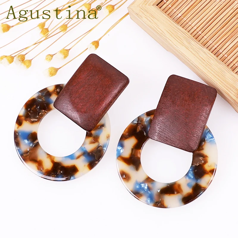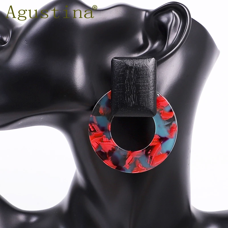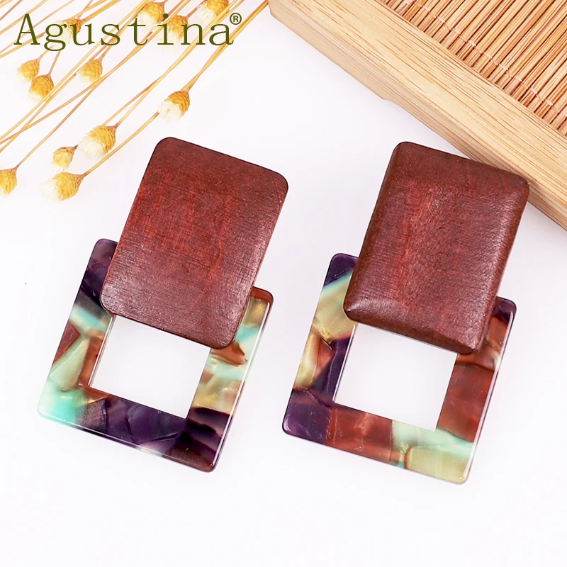 Деревянные ацетатные модные серьги Agustina, ювелирные изделия для девочек, висячие серьги для женщин, зеленые радужные серьги, серьги в стиле панк, серьги в стиле бохо cc