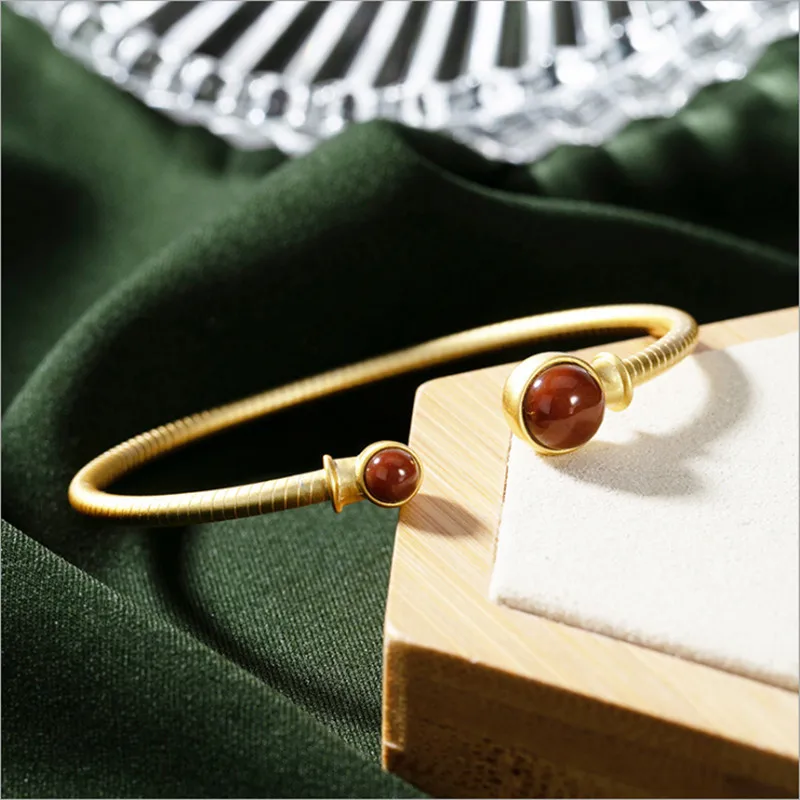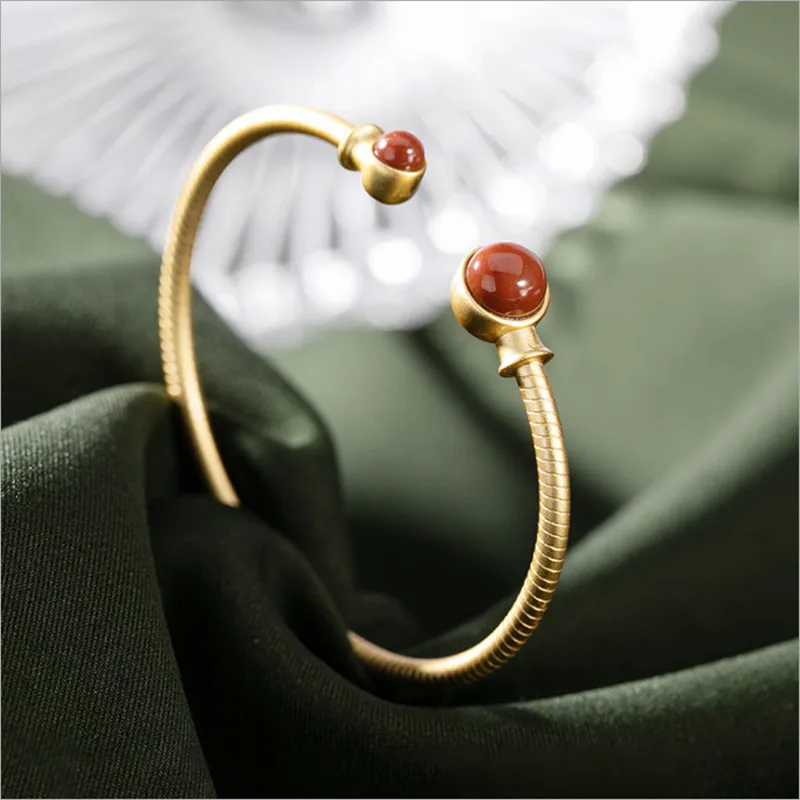 Агатовые шары без силикона, открытые браслеты для женщин, роскошный браслет из настоящего серебра 925 пробы, золотой браслет, драгоценный камень, ювелирные изделия из драгоценных камней BA713