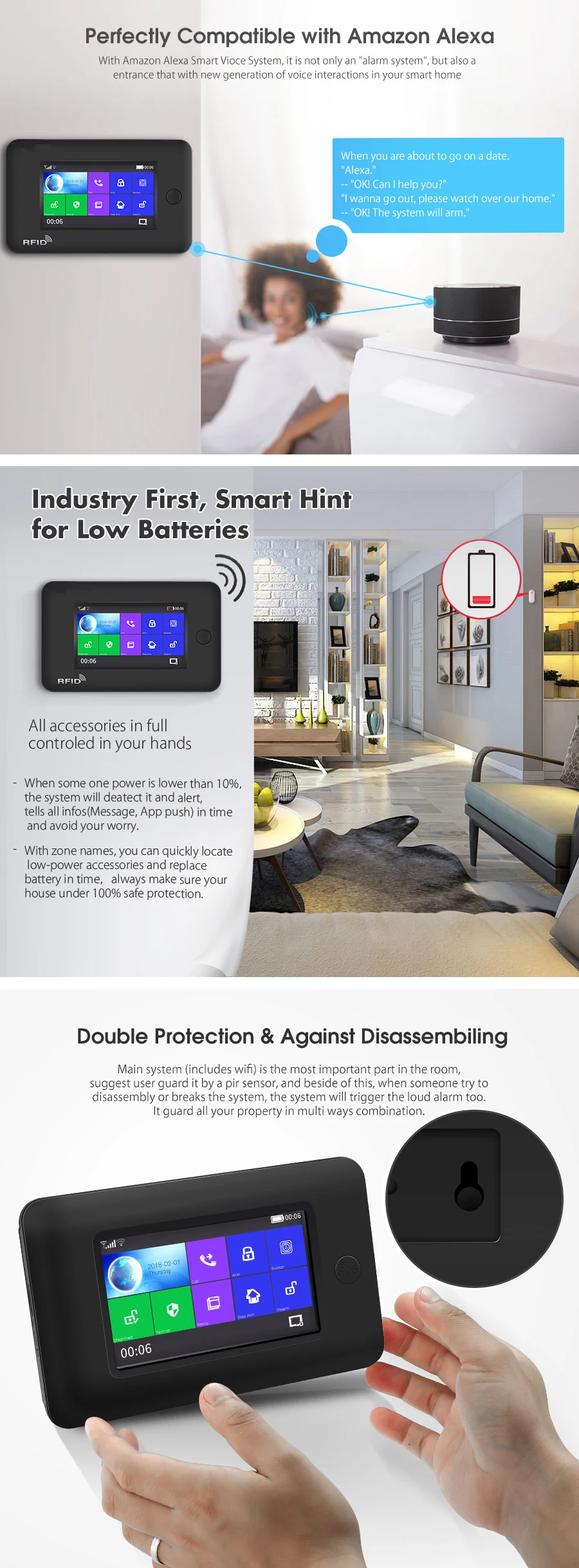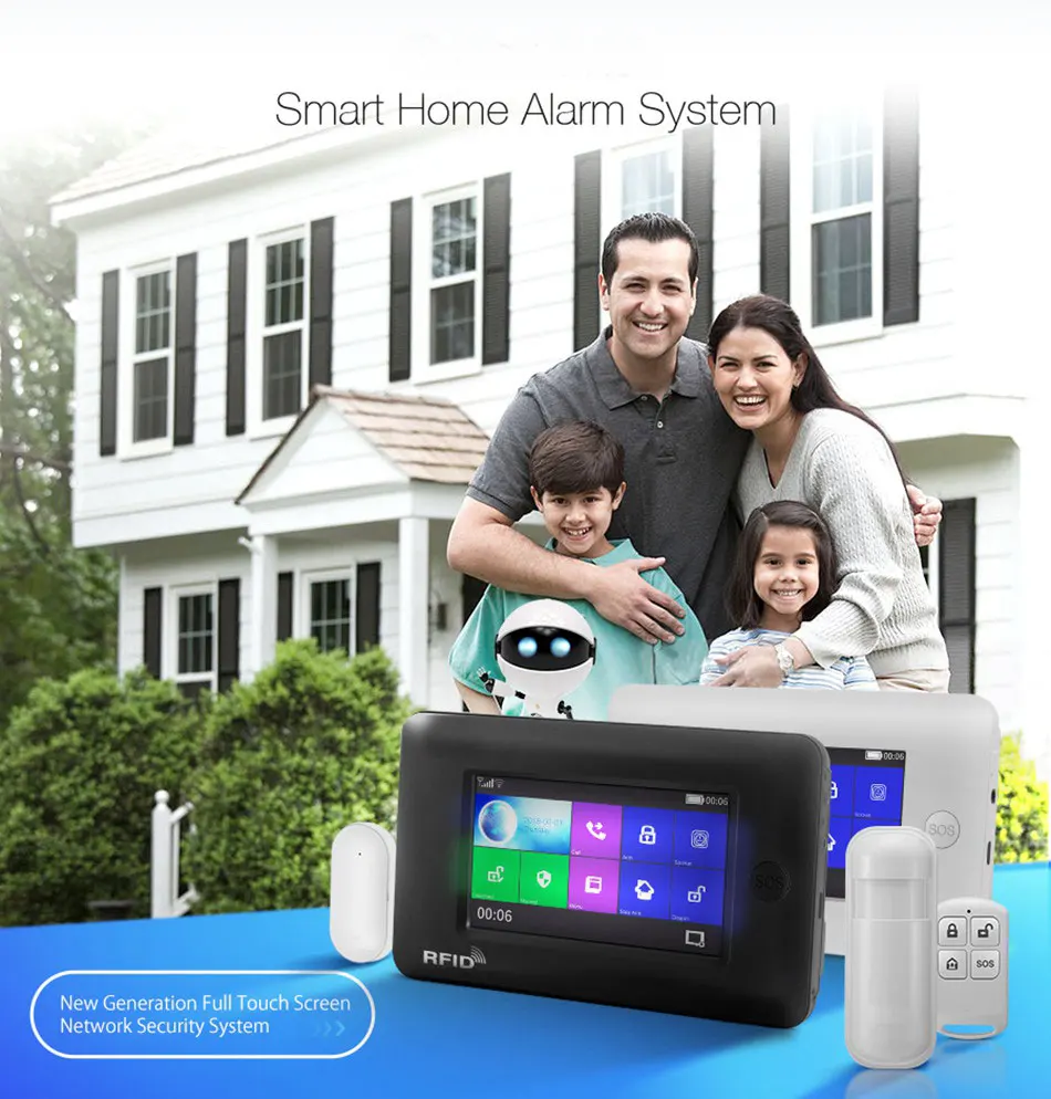 Беспроводная сигнализация 3g WiFi GPRS домашняя система охранной сигнализации с сенсорным экраном, SOS RFID, управление через приложение