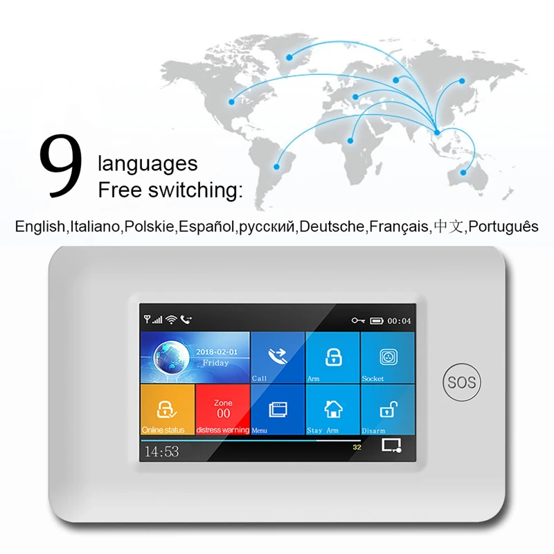 Полностью сенсорный дисплей домашняя система охранной сигнализации дюйма, Wi-Fi, GPRS, RFID 4,3, 10 языков, совместим с приложением Tuya сигнализация от взлома