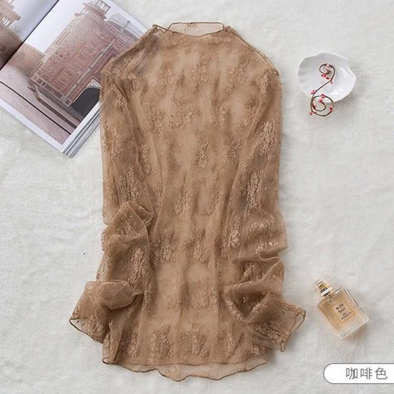 Блузка женская кружевная, прозрачная, с длинным рукавом, DD8098