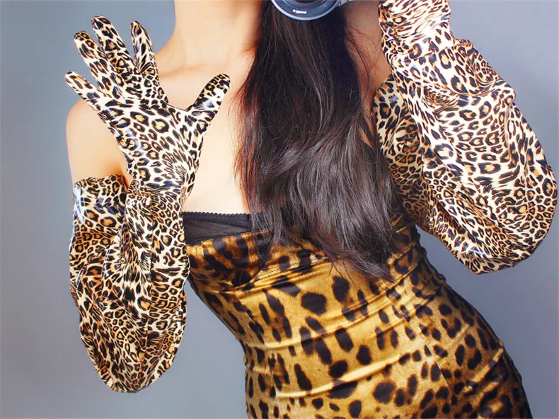 Женские длинные перчатки с большим рукавом, из искусственной кожи