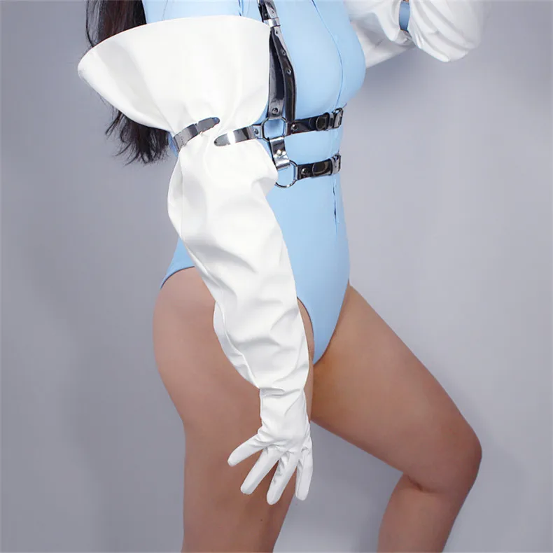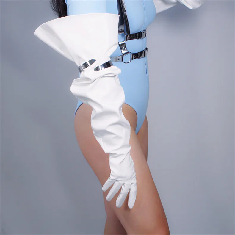 Очень большие длинные перчатки 70 см с широкими манжетами и рукавами-фонариками, белые мужские и женские перчатки из искусственной кожи, WPU140