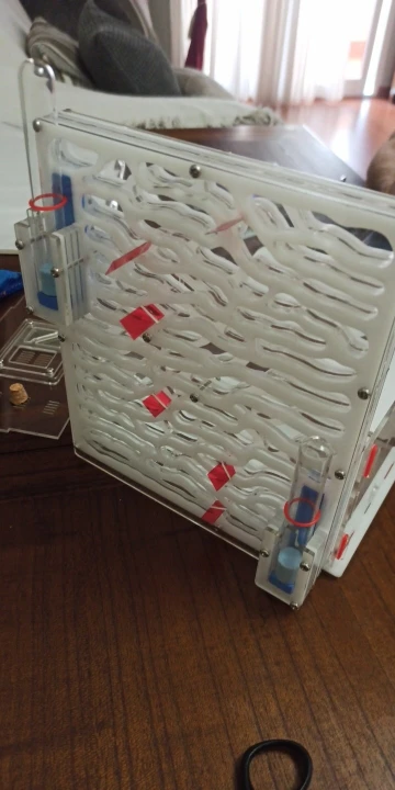 Винты отсутствуют. Во время сборки красный основание сломалось, потому что пространства для его запуска были недостаточно большими: 2 поломки