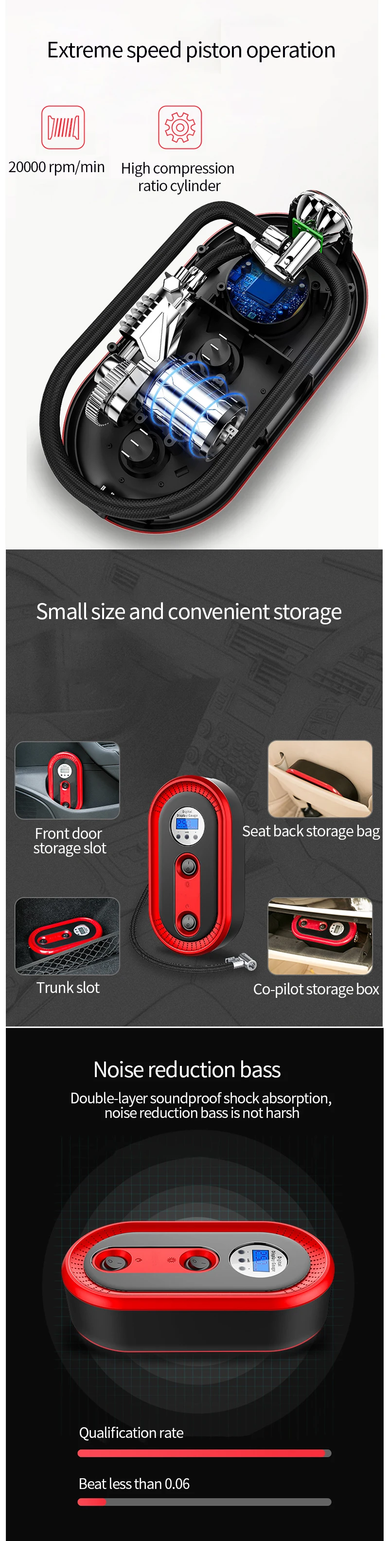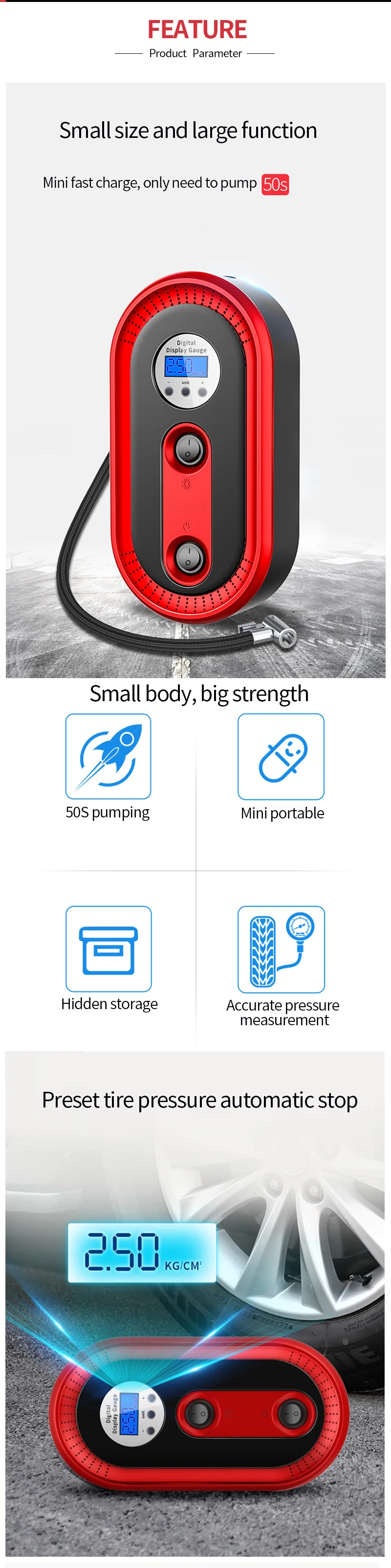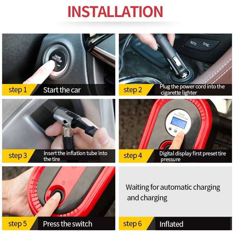 Беспроводной портативный воздушный компрессор для шин, ручной воздушный насос с цифровым ЖК-дисплеем 12 в 120 Вт