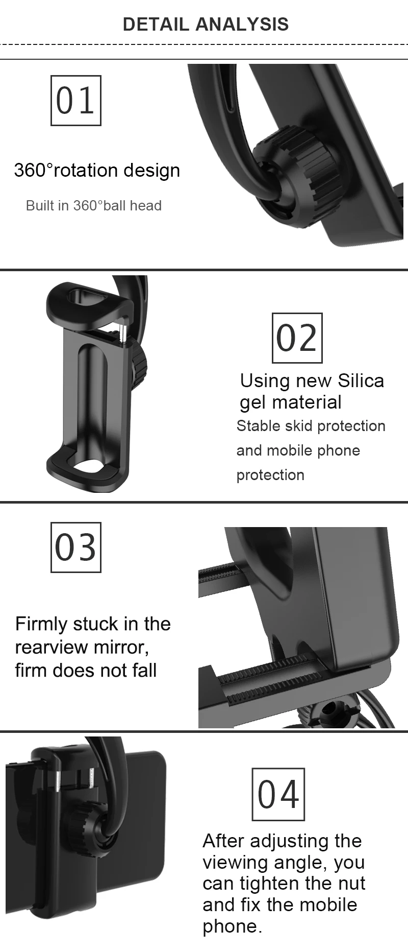 Регулируемое вращение на 360 автомобильное крепление для автомобильного зеркала заднего вида держатель для телефона подставки для универсального смартфона GPS